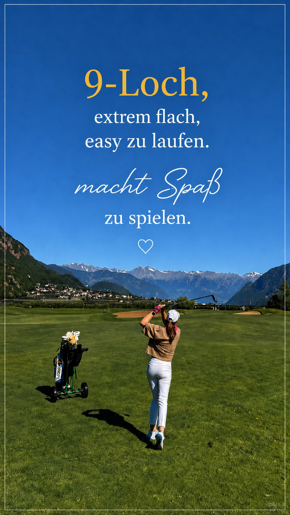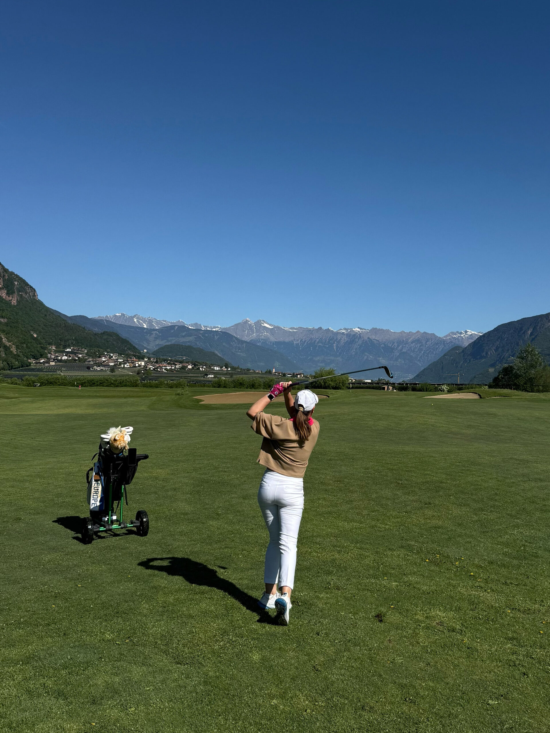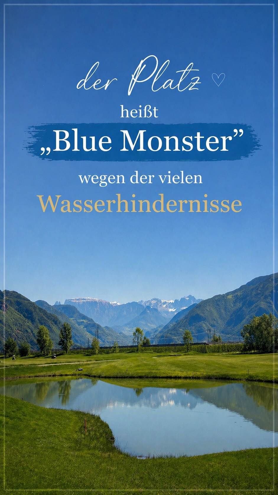 Während der Runde konnte ich es mir natürlich nicht verkneifen, ein paar Eindrücke direkt auf meinem Instagram-Account @frau__moni zu teilen – und ich finde, die Bilder können sich durchaus sehen lassen. Sie bringen ziemlich genau auf den Punkt, was eine Runde im Golf Club Eppan ausmacht: spektakuläre Bergkulisse, viel Wasser, perfekt gepflegte Fairways und dieses entspannte Südtirol-Gefühl irgendwo zwischen ernsthaftem Golf und Dolce Vita. Oder anders gesagt: ein Platz, der nicht nur spielerisch, sondern auch fotogen regelmässig unter Par liefert.