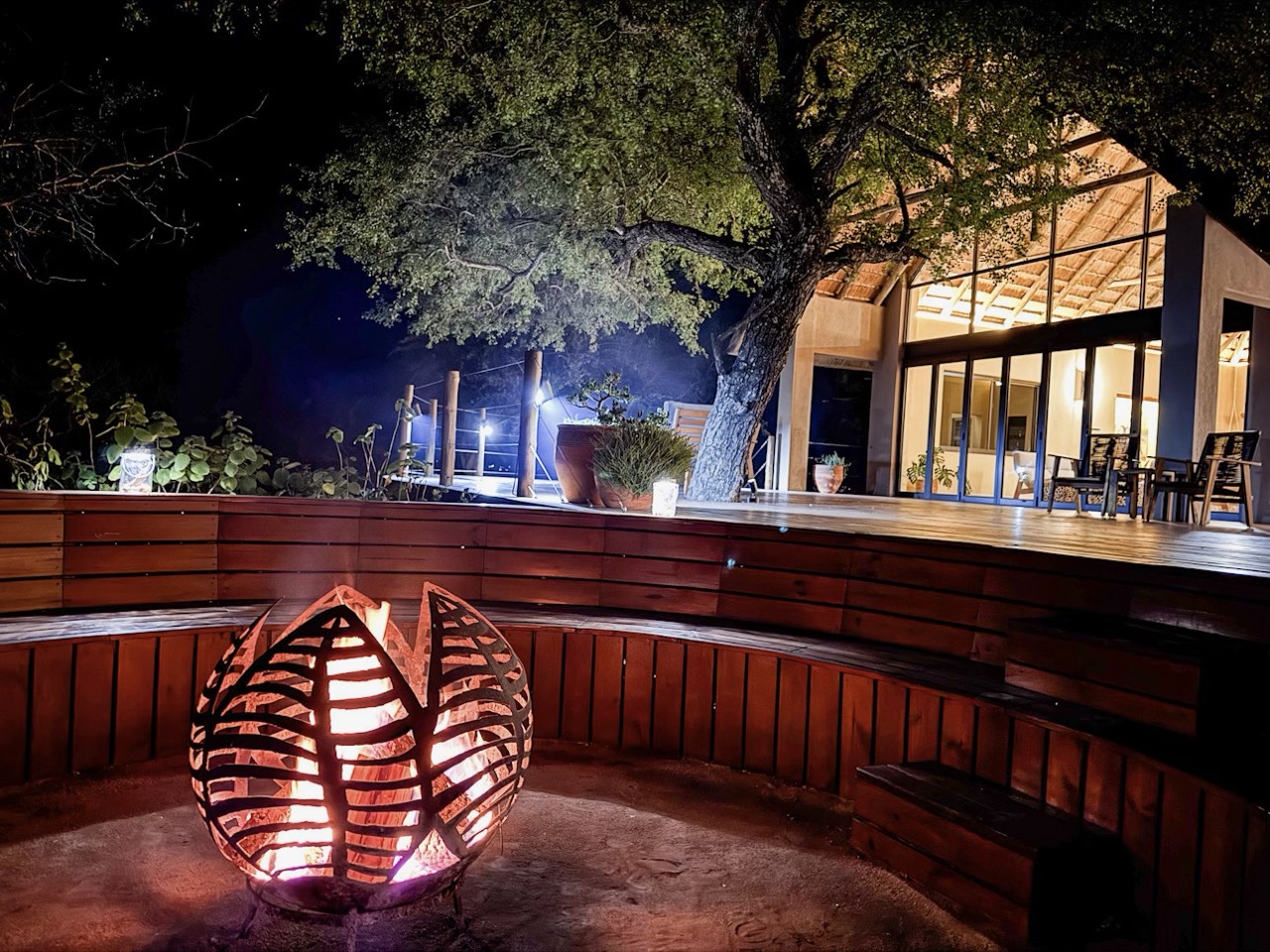Drinnen wie draussen findest du stilvolle Essbereiche und gemütliche Lounges. Ob bei einem Kaffee am Morgen, einem Buch am Nachmittag oder einem Drink von der gut bestückten Bar – hier findet jeder Moment seinen Platz. Und wenn in der abgesenkten Boma das Feuer knistert, wird daraus mehr als ein Tagesabschluss: ein echtes Erlebnis. In diesem Herzstück der Lodge spürst du sofort – alles ist im Rhythmus der Ruhe.