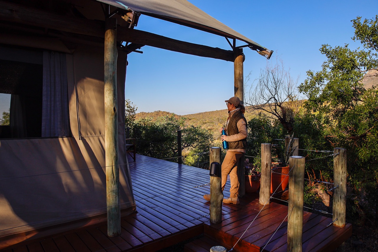 Durch weite Fensterfronten holen sich die Drakensberge direkt an dein Bett. Und wenn ich von «Zelt» spreche, meine ich: skandinavischer Minimalismus trifft auf Safari-Romantik. Helle Hölzer, Leinen in Naturtönen, bewusst gewählte Materialien – ganz ohne überflüssigen Schnickschnack.