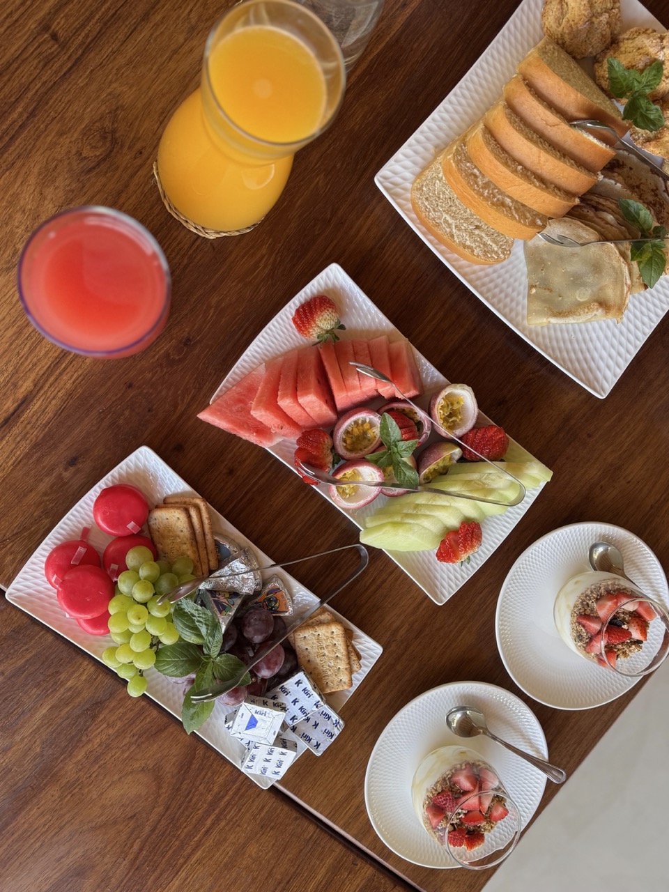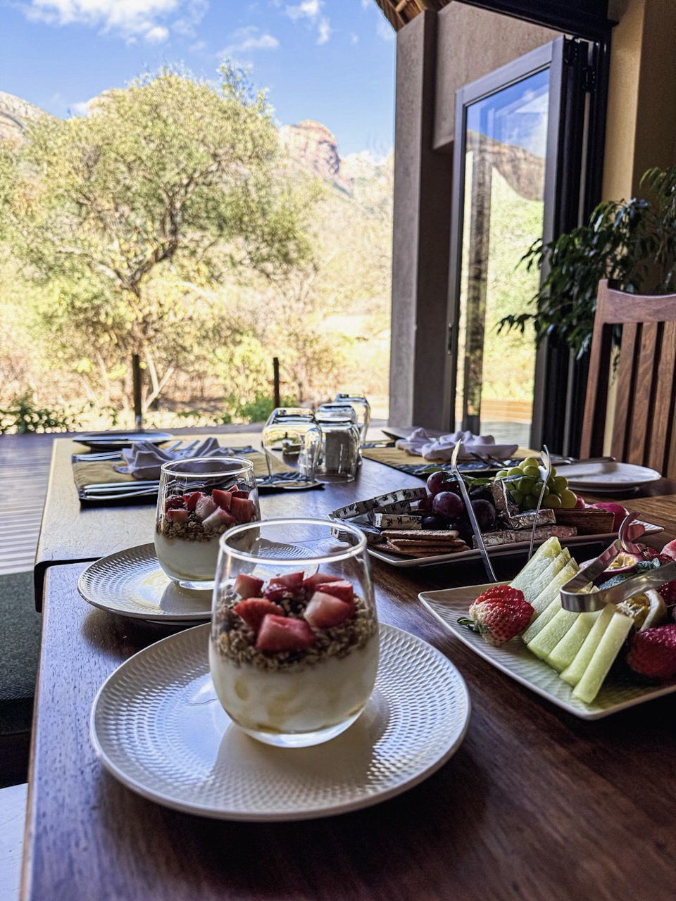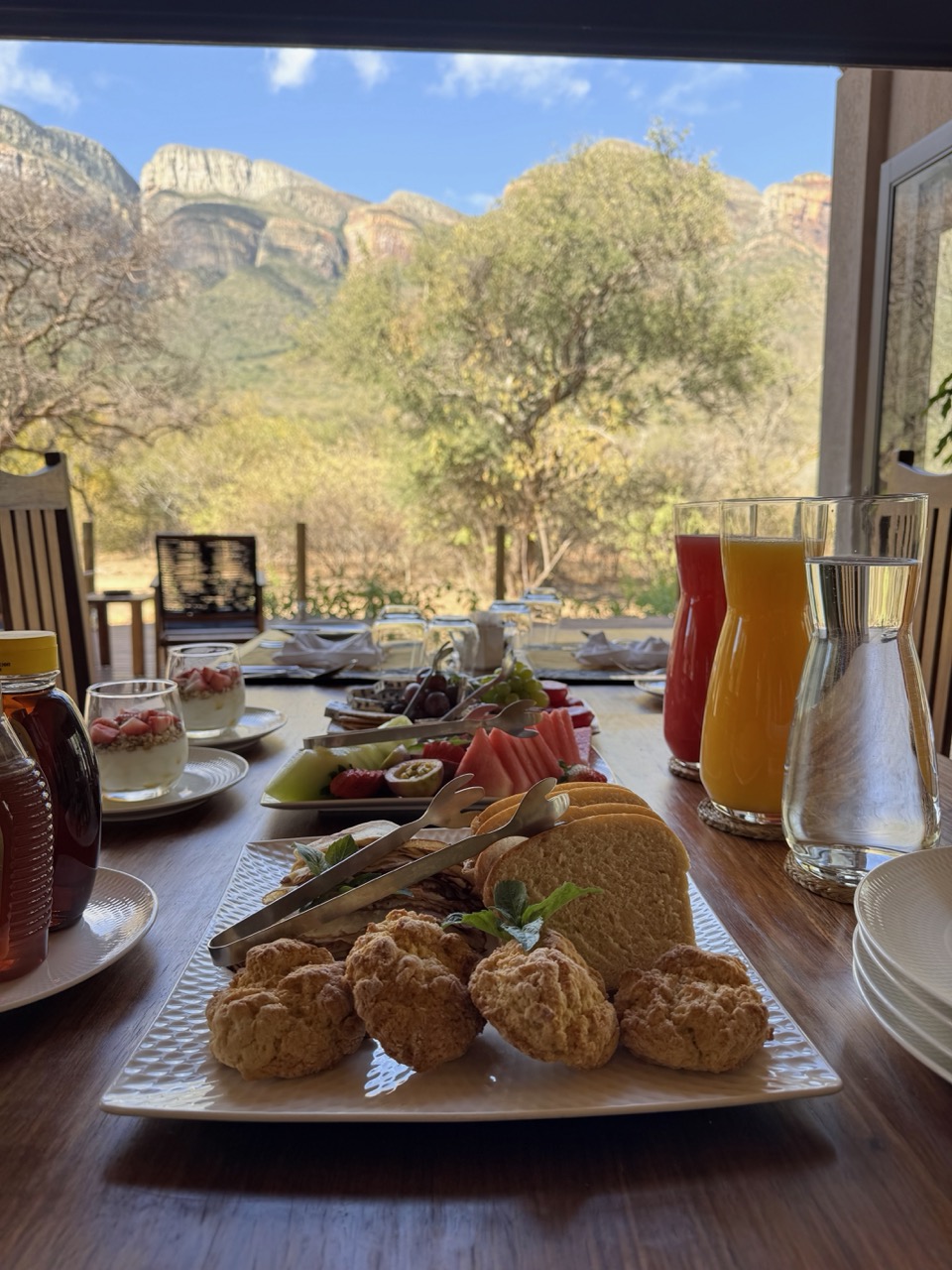 In der Cape Vulture Lodge isst du nicht nur gut – du isst mit gutem Gewissen. Die Küche legt grossen Wert auf Qualität, Regionalität und Geschmack. Viele der Zutaten stammen direkt aus dem eigenen Permakulturgarten, der gleich neben den Lodges liegt. Dort wachsen frisches Gemüse, Kräuter und saftige Früchte, die je nach Saison den Weg vom Feld direkt auf deinen Teller finden. Das Frühstück beginnt mit einer Auswahl der besten Früchte – sonnenverwöhnt, aromatisch und erntefrisch. Die Gerichte sind hausgemacht, liebevoll zubereitet und spiegeln die Aromen der Region wider. Ob vegetarisch oder mit Fleisch: Hier wird gekocht, was wächst – nachhaltig, ehrlich und einfach richtig gut.