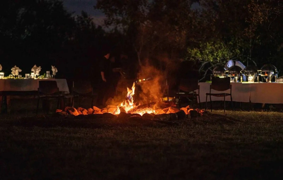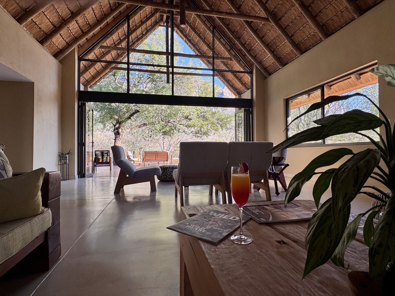 Drinnen wie draussen findest du stilvolle Essbereiche und gemütliche Lounges. Ob bei einem Kaffee am Morgen, einem Buch am Nachmittag oder einem Drink von der gut bestückten Bar – hier findet jeder Moment seinen Platz. Und wenn in der abgesenkten Boma das Feuer knistert, wird daraus mehr als ein Tagesabschluss: ein echtes Erlebnis. In diesem Herzstück der Lodge spürst du sofort – alles ist im Rhythmus der Ruhe.