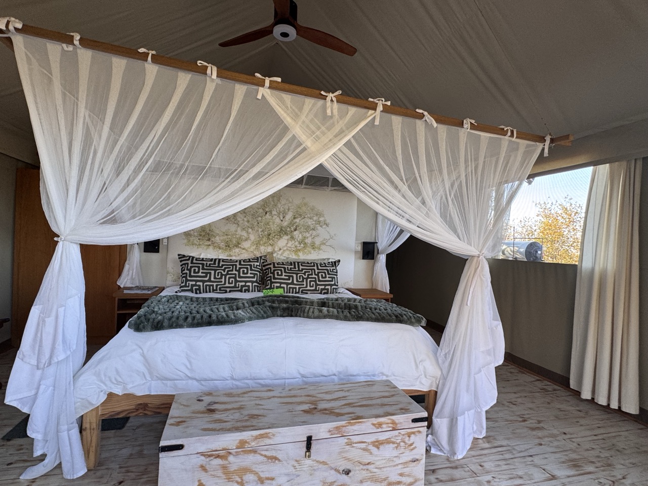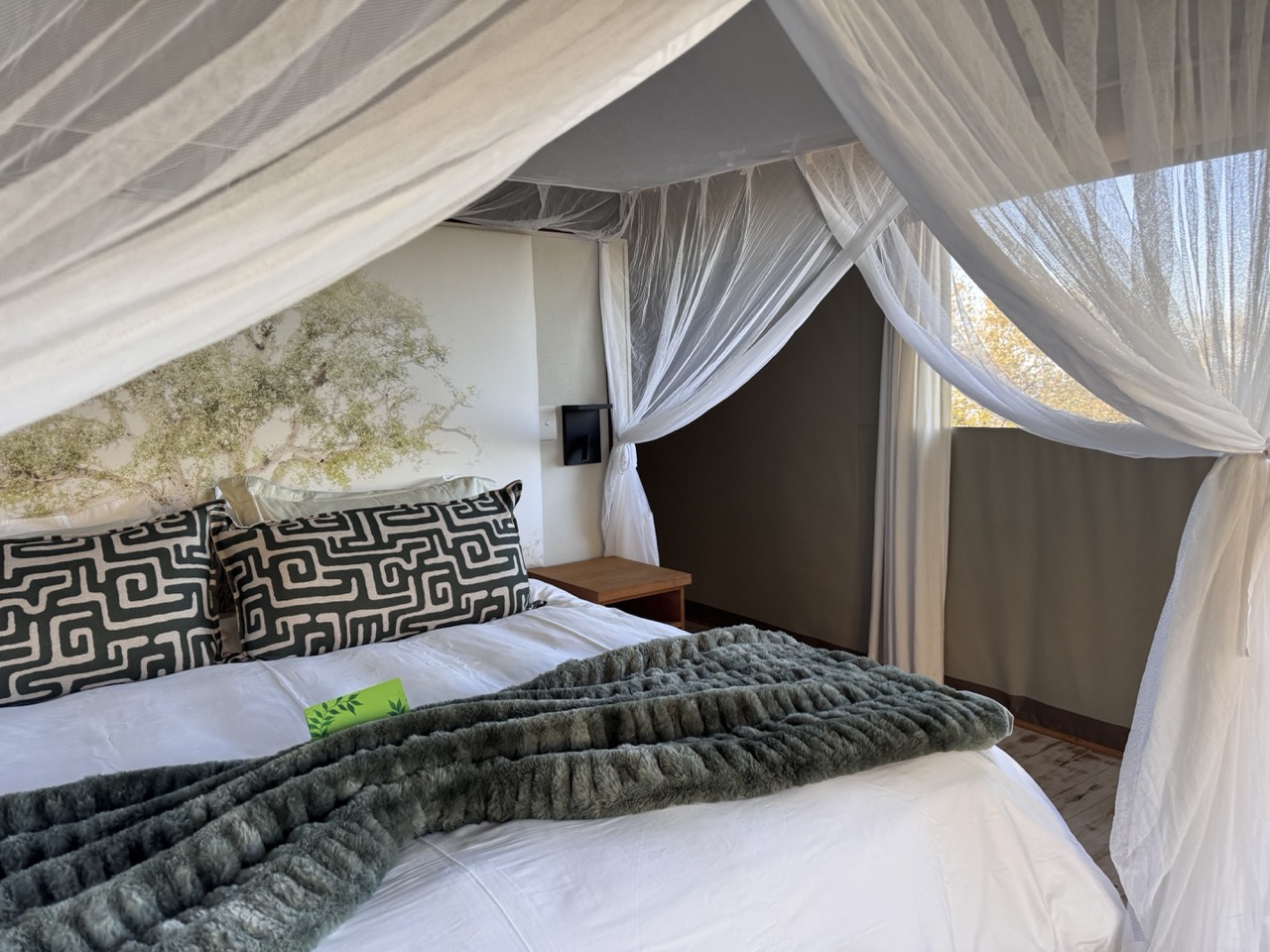 Hier nächtigst du in einem sogenannten Tented Camp auf erhöhten Holzdecks – aber keine Sorge: Das hier ist keine Camping-Romantik mit Isomatte und Stirnlampe. Jede der neun solarbetriebenen Zelt-Suiten ist sicher und grosszügig über das Gelände verteilt – für maximale Privatsphäre, ungestörte Nächte und dieses besondere Gefühl, wirklich mittendrin zu sein. In der Wildnis.