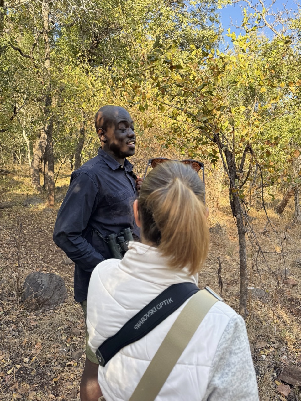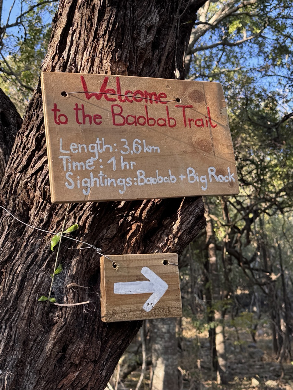 Wir schlüpfen also in unser Safari-Outfit, schnüren die Wanderschuhe – und los geht’s: hinein in den Baobab-Trail, zwei Stunden voller wilder Eindrücke. Der Pfad zieht sich durchs trockene Gras, führt vorbei an neugierigen Zebras und scheuen Kudus. Mal raschelt es im Busch, mal funkelt die Sonne durch das dichte, typisch afrikanische Dickicht. Jeder Schritt bringt uns tiefer hinein in diese ursprüngliche Welt, wo die Natur den Ton angibt.