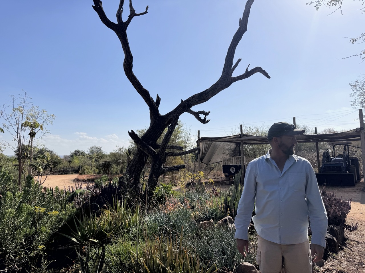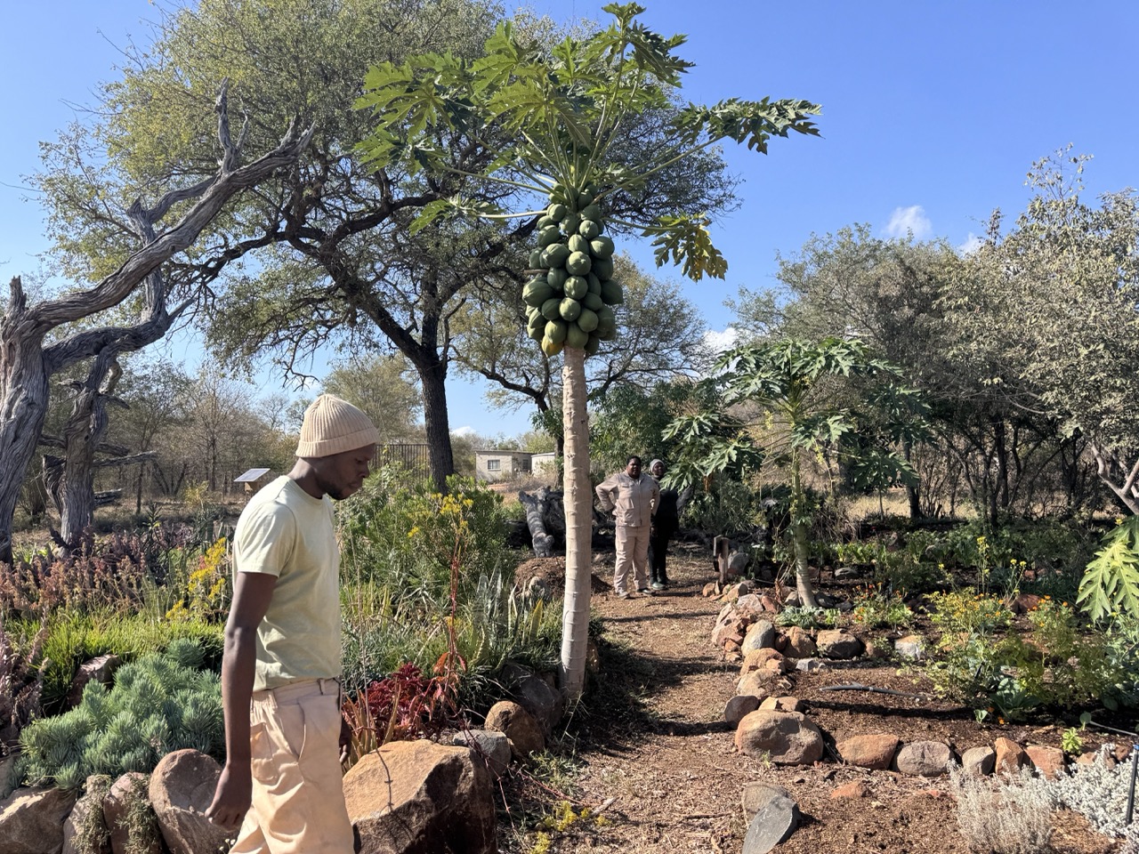 Was die Umwelt betrifft, verfolgt Frikkie das Ziel, die Lodge in naher Zukunft zu 95 % autark zu machen. Das bedeutet nicht nur konsequente Nutzung von Solarenergie, sondern auch eine vollständige Wiederverwertung des Wassers, effizientes Abfallmanagement sowie den Verzicht auf Einwegplastik und umweltschädliche Chemikalien. Stattdessen setzen sie auf erneuerbare und recycelbare Materialien – und bauen den Grossteil der benötigten Lebensmittel im hauseigenen Permakulturgarten an.