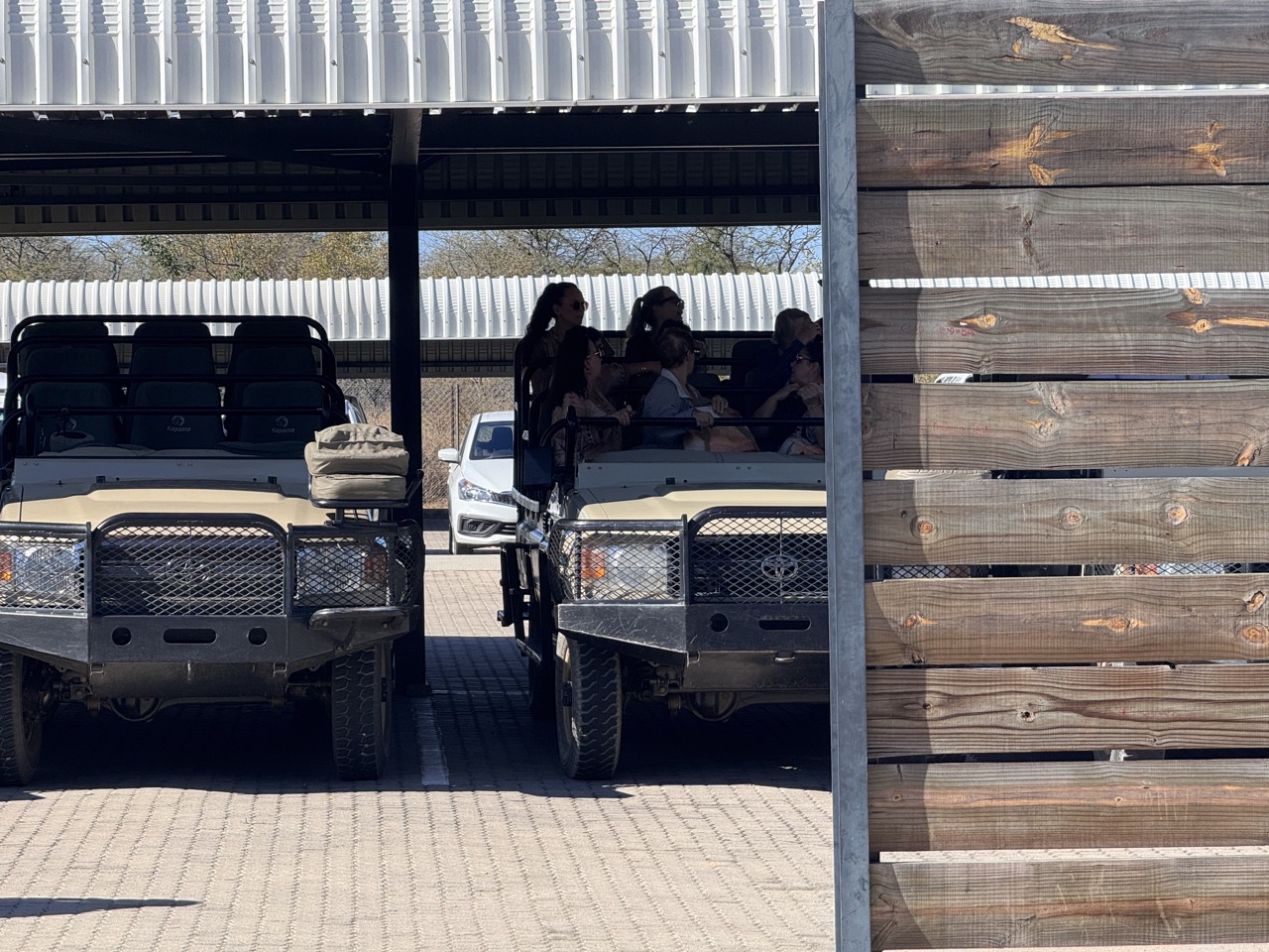 Unsere Fahrt vom Haupttor zur Lodge dauert etwa 15 Minuten – perfekt für eine Mini-Pirschfahrt. Im Naturschutzgebiet leben zahlreiche Steppenwildarten wie Gnus, Kudus und Giraffen. Links raschelt es im Busch, rechts hebt eine Zebraherde neugierig den Kopf. Warzenschweine flitzen quer über den Weg, als hätten sie es besonders eilig.