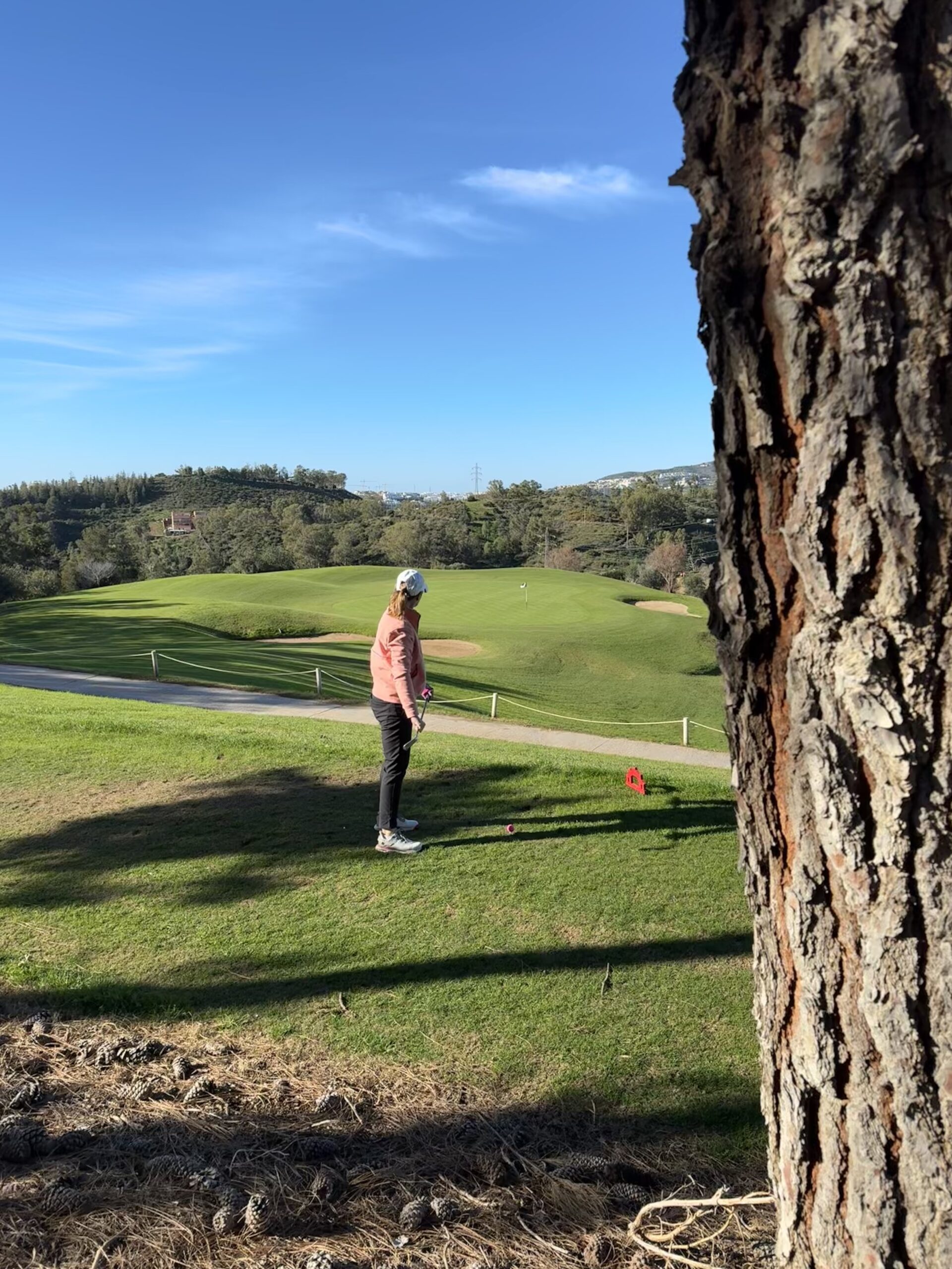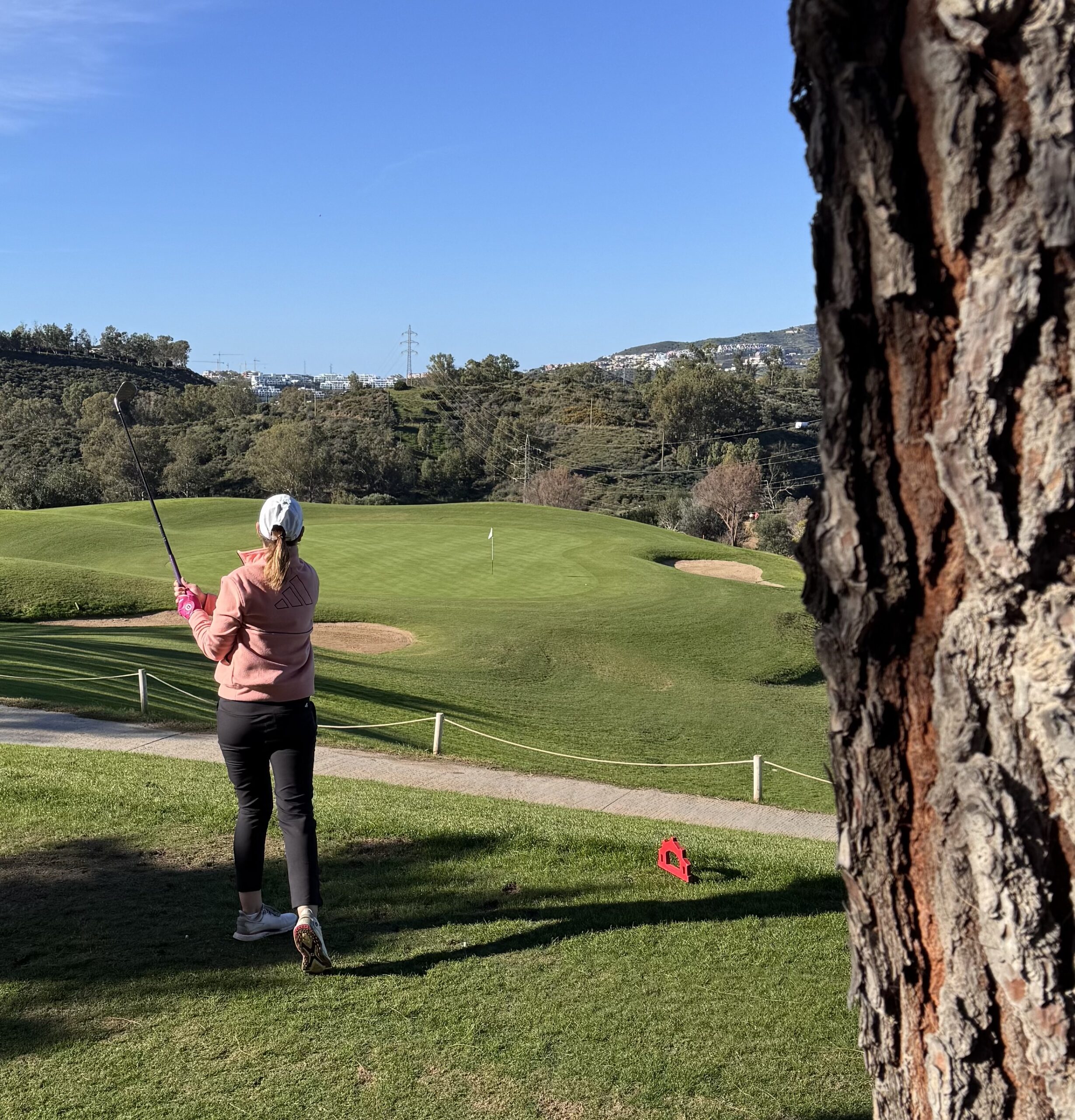 Der Parkland-Forest-Course vom Chaparral Golf Club Mijas ist eine Klasse für sich: Umgeben von dichten kanarischen Pinien, eingebettet in enge Canyons, durchzogen von Schluchten und Strassen. Klingt wild? Ist es auch. Aber genau das macht den Reiz aus. Hier brauchst du nicht nur Länge, sondern vor allem Nerven. Jeder Abschlag eine Entscheidung. Jeder Putt ein Statement. Und jedes Par fühlt sich wie ein kleines Kunstwerk an. Hier braucht es nicht nur Power, sondern auch Präzision – ein Green in Regulation? Absolut machbar. Aber danach zeigt sich, wer wirklich Nerven wie Drahtseile hat. Für Spielerinnen, die gerne Druck aufbauen, bieten die blauen Abschläge perfekte Voraussetzungen: fordernd, aber fair – und mit Aussichten, die deutlich schöner sind als die roten.