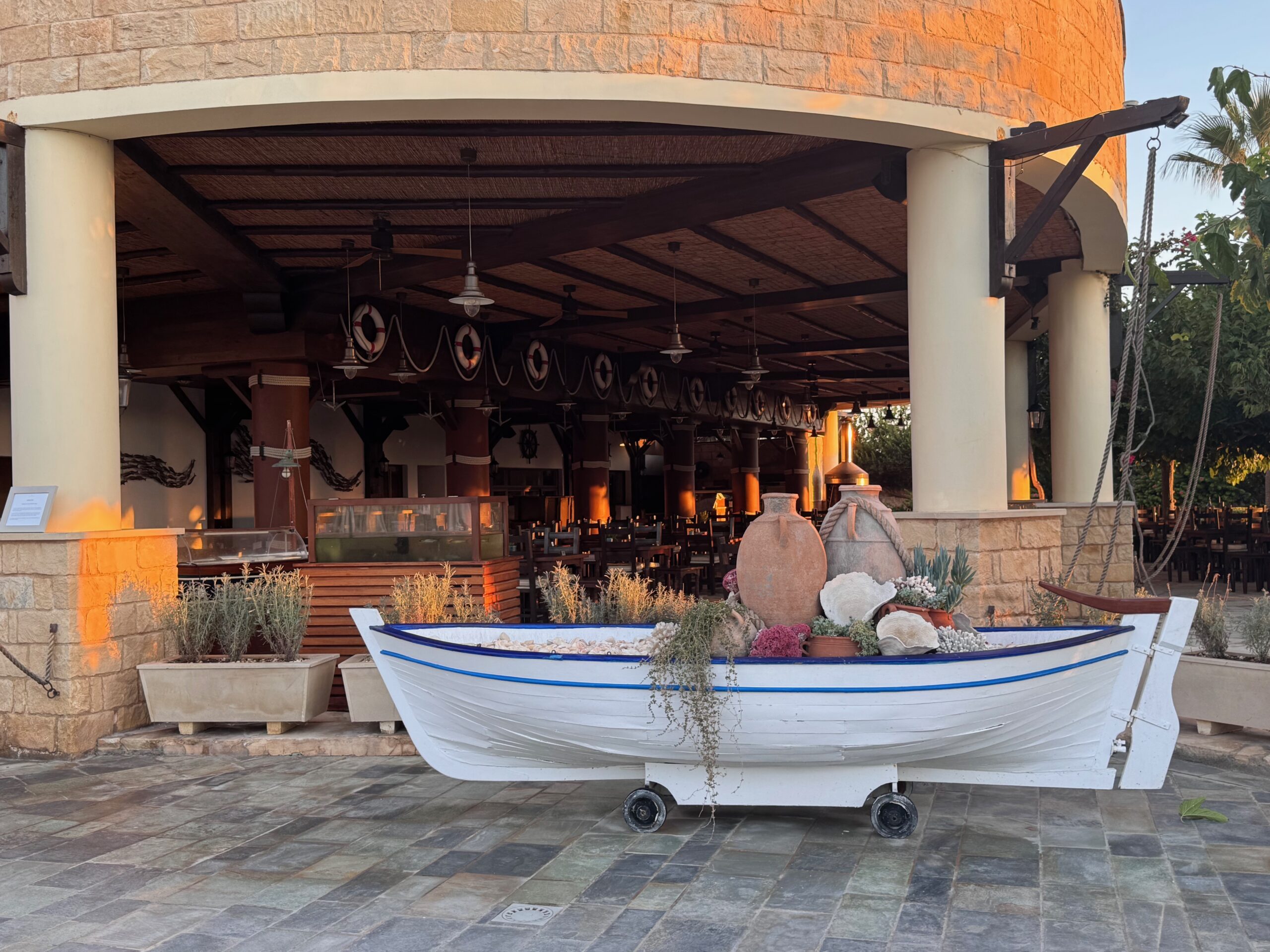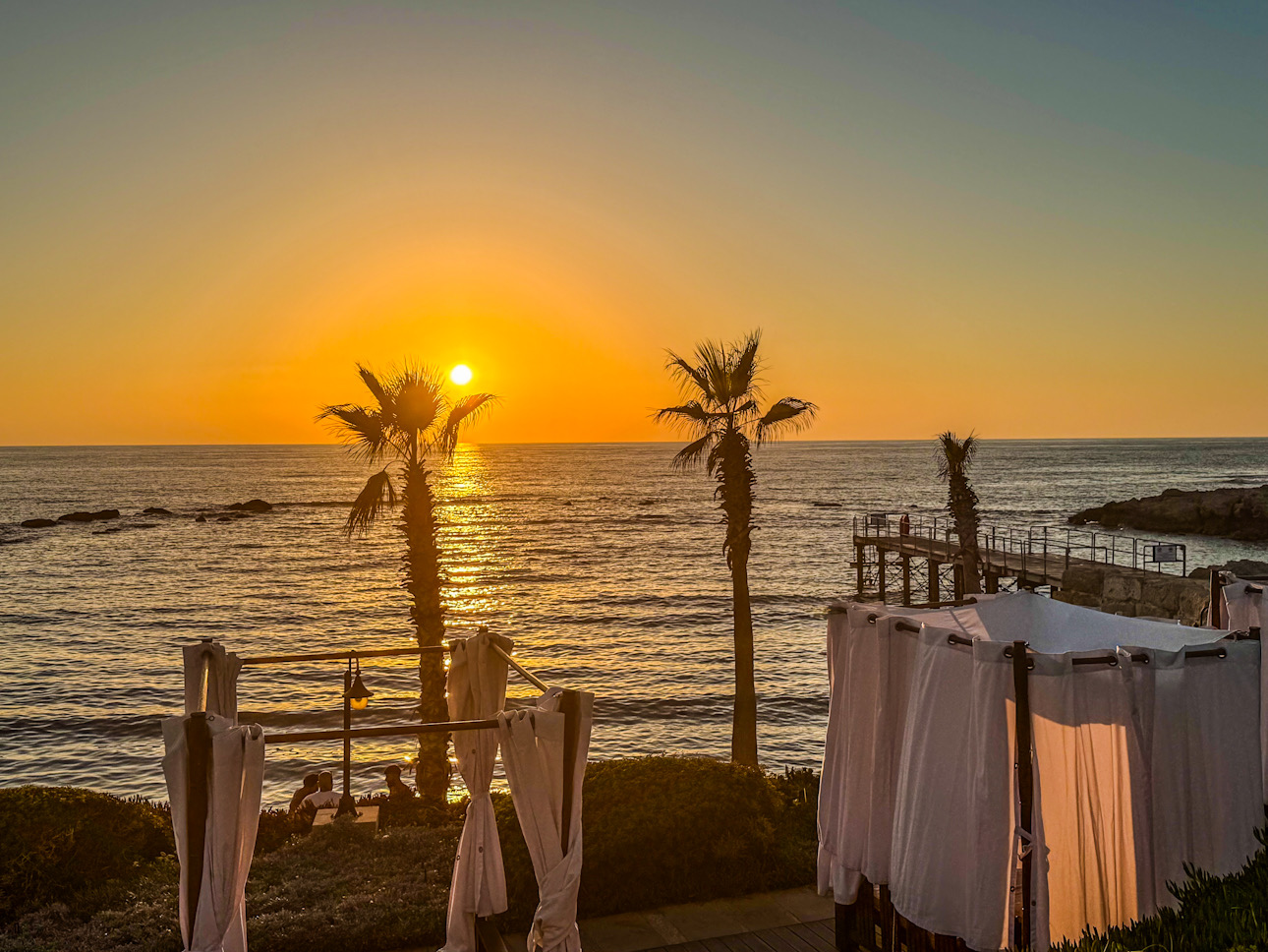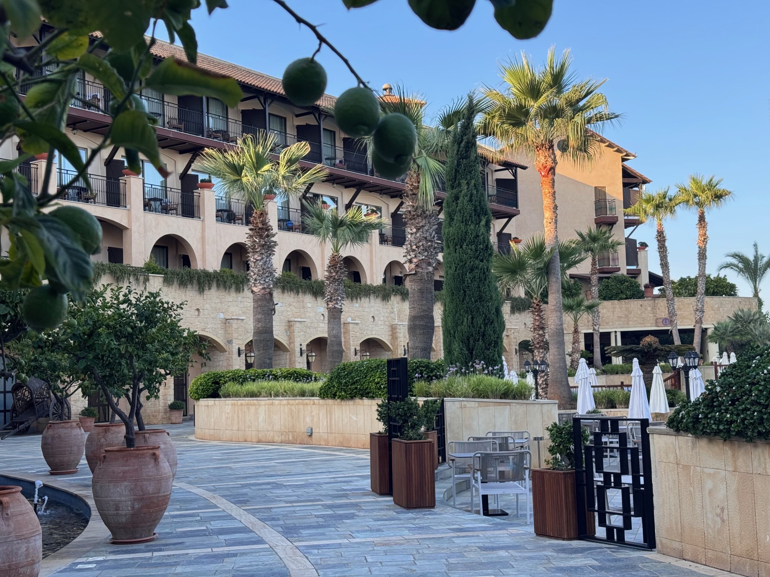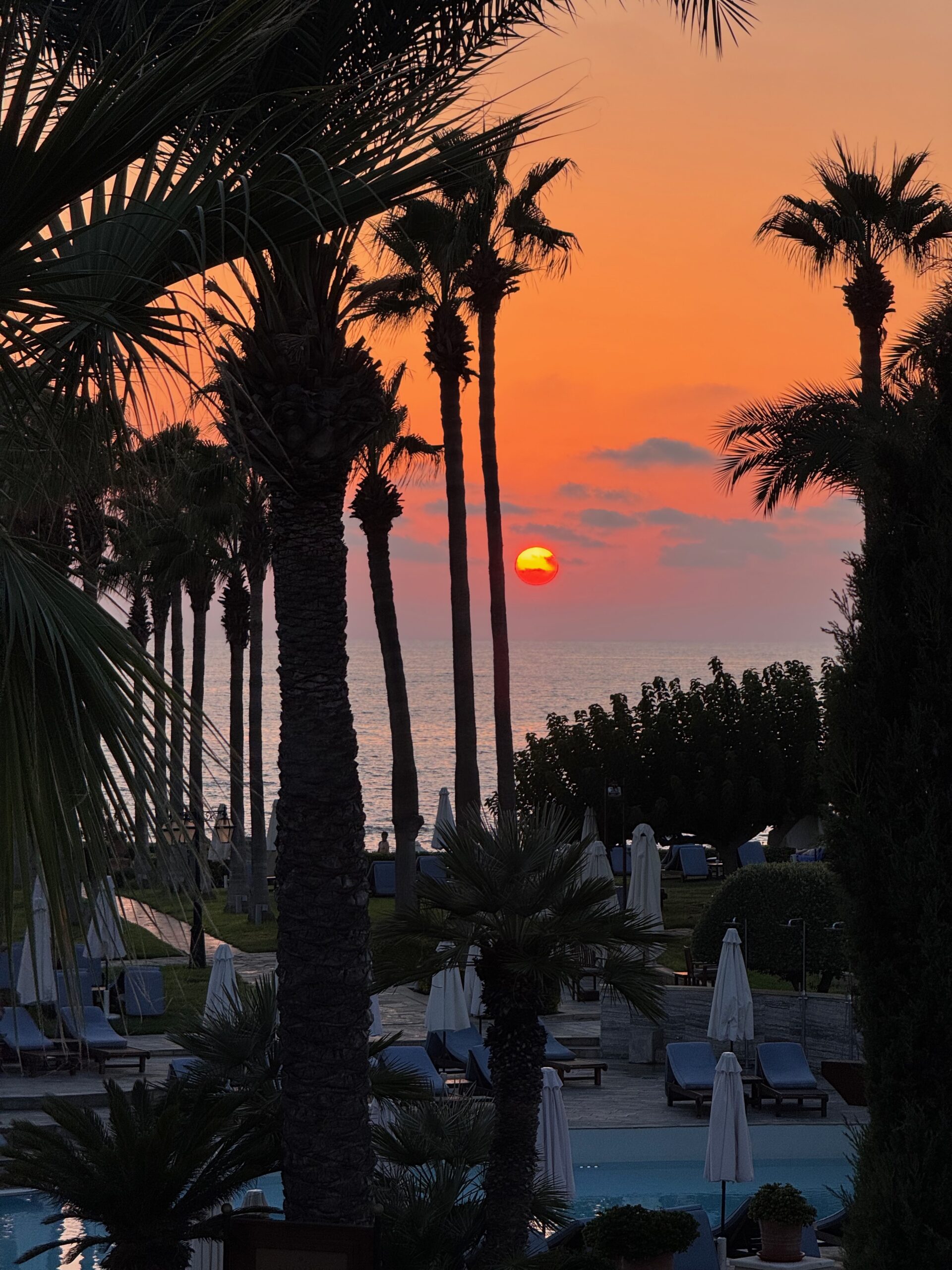 Die Stimmung im Hotel nach einer heissen Golfrunde bei 36 Grad im September ist genau so, wie man sich Ferien wünscht. Das Meer funkelt, während die Sonne langsam hinter den Palmen der weitläufigen Poollandschaft versinkt. Vom Zimmerbalkon oder mit einem kühlen Drink an der Bar erlebst du dieses Schauspiel hautnah – begleitet von kleinen zypriotischen Häppchen, die genauso süchtig machen wie das Panorama. Die Atmosphäre wird untermalt von sanfter Loungemusik, und wenn der Abend fortschreitet, sorgen Musiker live mit neu interpretierten Ed-Sheeran-Songs für romantische Gänsehaut. Klingt kitschig? Vielleicht. Aber ganz ehrlich – genau so fühlt es sich an.