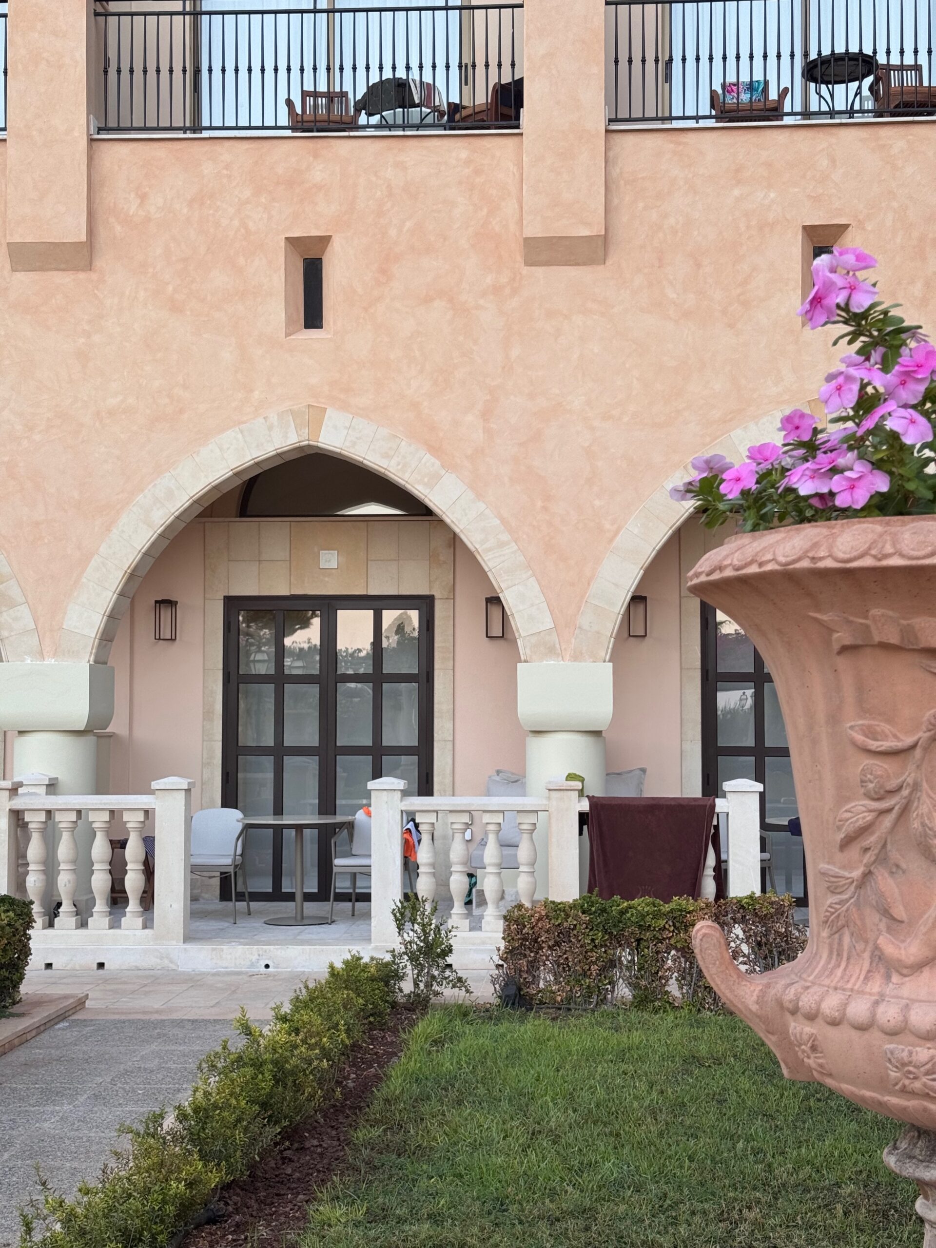 Die Familien-Maisonette-Suiten sind ideal für alle, die Privatsphäre und modernen Luxus suchen. Etwas abseits vom Trubel des Haupthauses gelegen, wirken sie fast wie kleine Townhouses – mit eleganten Arkadenbögen, charmanten Balkonen und luftigen Loggien. Der Stil erinnert mich an ein Kloster oder eine historische Villa.
