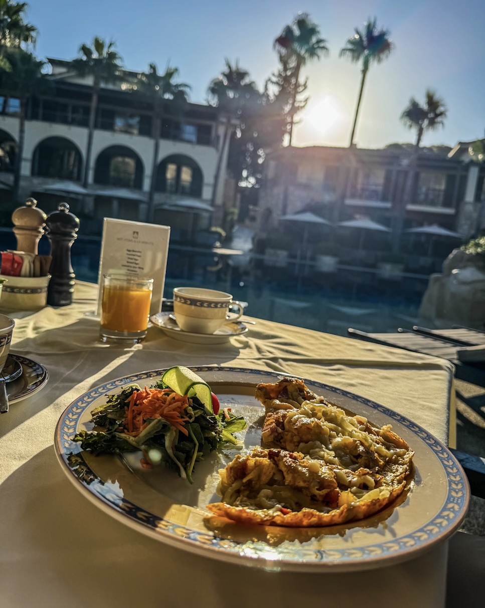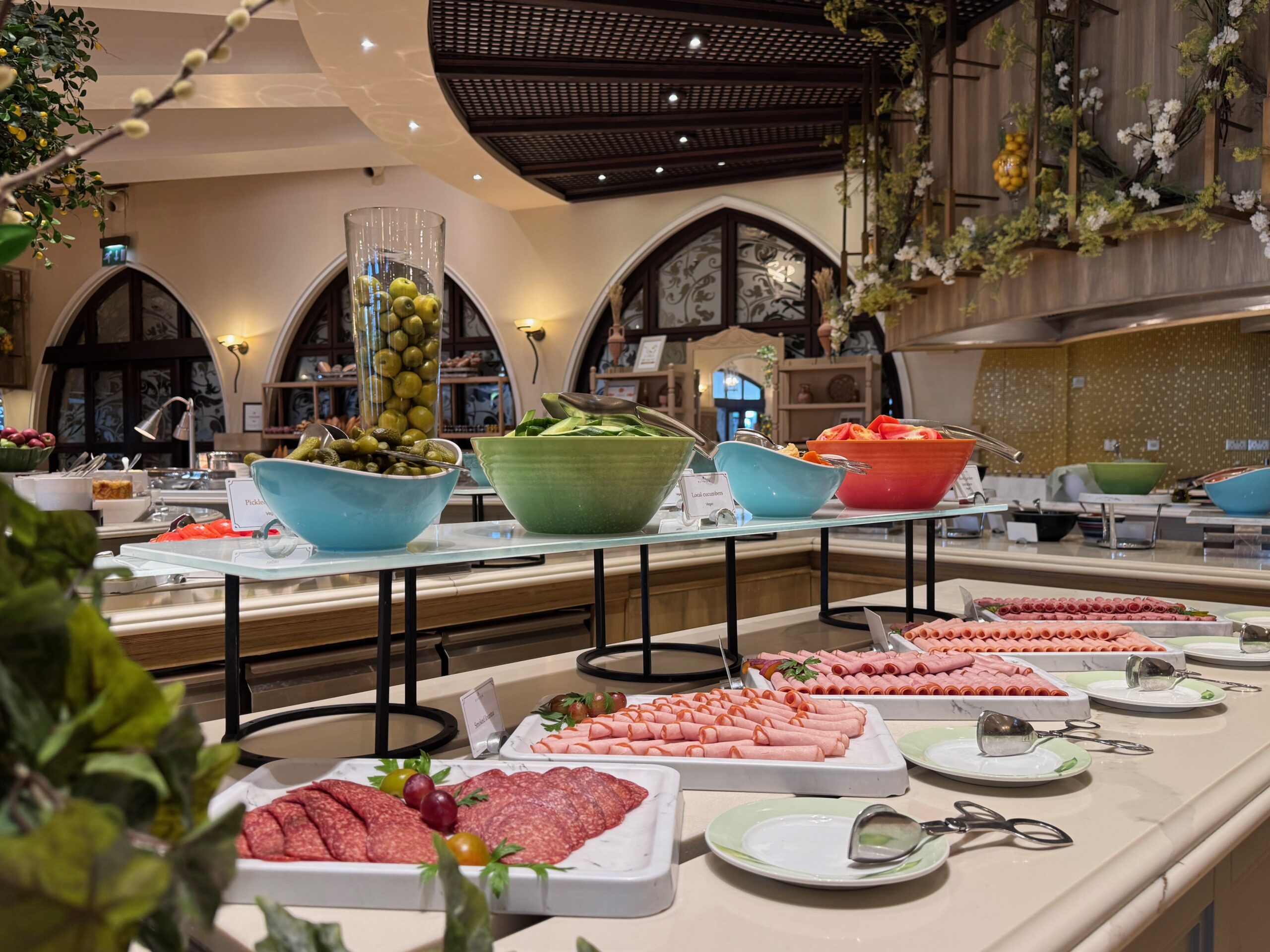 Wer lieber unter Menschen geniesst, findet am Frühstücksbuffet die volle Auswahl: drinnen stilvoll oder draussen am Pool unter Palmen. Feinschmeckerherzen schlagen hier höher – frisches Obst, knusprige Brote, warme Speisen aus aller Welt. Und ein Kaffee, der dich so punktgenau trifft wie dein Sweet Spot beim Driver. Waffeln und Pancakes, triefend vor Ahornsirup oder Schokolade, wechseln sich ab mit mediterraner Power – Rösti, frisches Gemüse und Bohnen. Alles in allem: der perfekte Auftakt für die nahende Golfrunde.