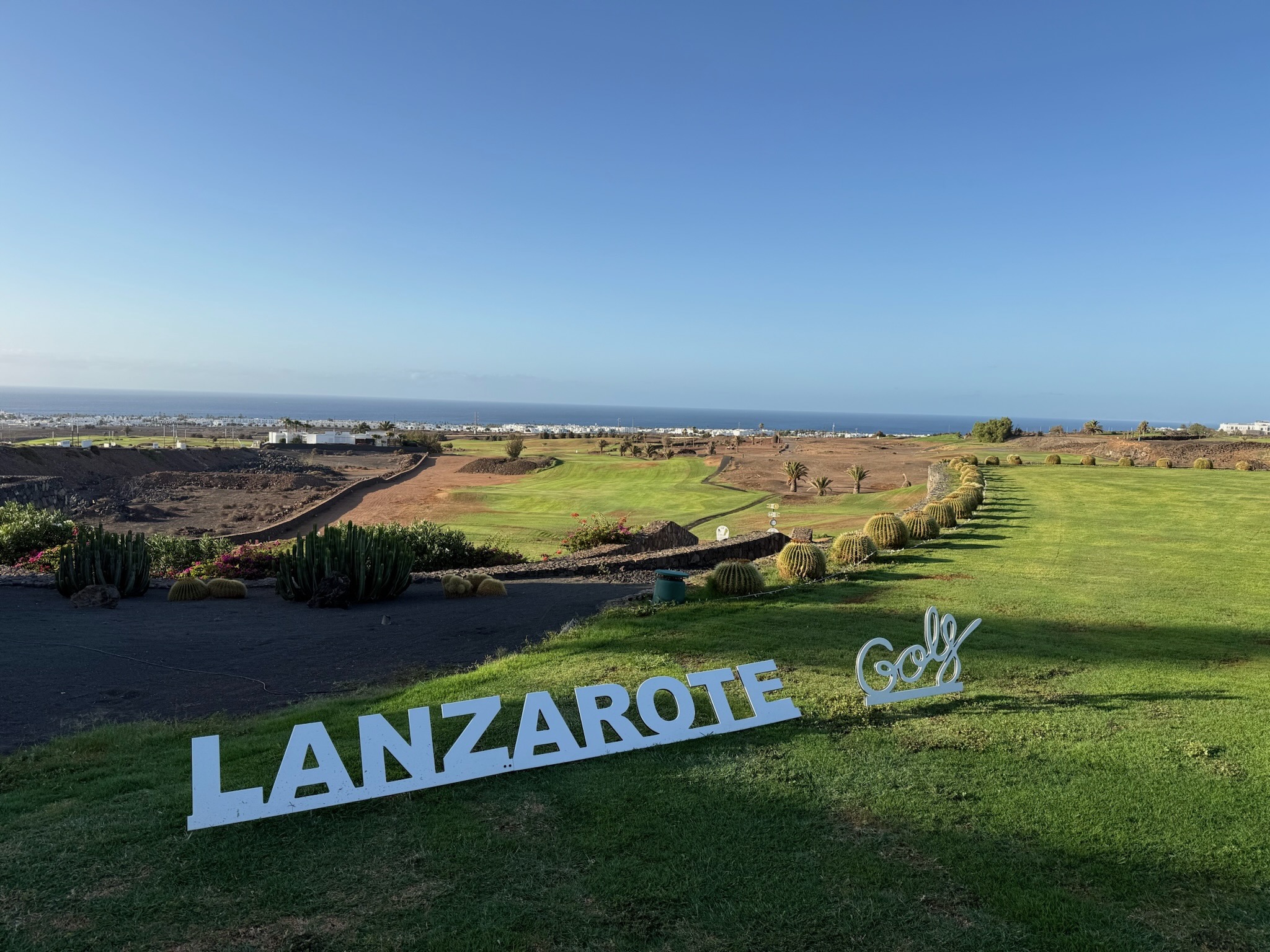 Im Süden der Insel, nur wenige Minuten vom Ferienort Puerto del Carmen entfernt, spielst du auf einem Kurs, der dir mit jedem Schlag ein Panorama schenkt: Der Atlantik glitzert in der Ferne, dunkle Vulkankegel ragen auf – und dazwischen zieht sich ein sattes Grün, das fast surreal wirkt. Dazu mischt sich der Wind, würzig und salzig, in die Morgenluft.