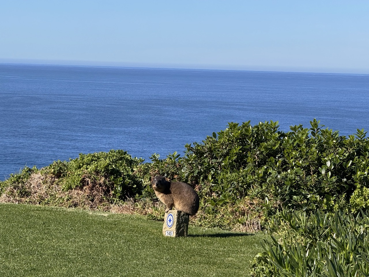 Und dann wären da noch die heimlichen Stars des Platzes – die Klippschliefer. Diese pelzigen, murmelgrossen Gesellen mit treuem Blick und erstaunlicher Coolness thronen auf den Tee-Boxen. Sie beobachten dein Spiel mit stoischer Ruhe und lassen sich durch nichts aus der Fassung bringen – auch nicht beim genüsslichen Mahl auf den sattgrünen Fairways.