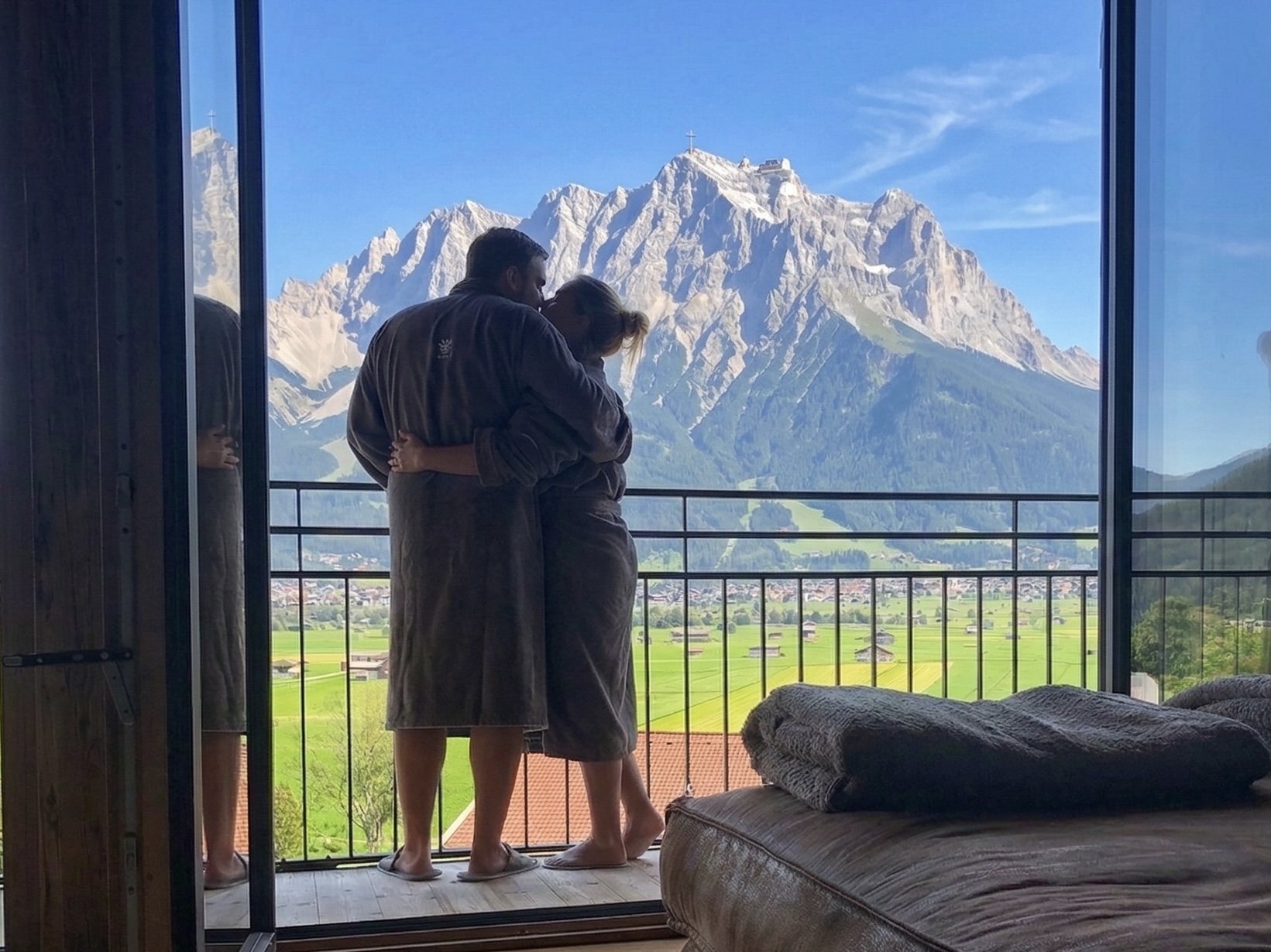 Das Wellnesshotel in Tirol hat diesen „Bei-guten-Freunden“-Vibe – nur eben mit Haubenmenü, luxuriösen Zimmern und einem freien Blick auf die sonnige Seite des Zugspitzmassivs. Und genau dieser Ausblick holt dich morgens garantiert erwartungsvoll aus dem Bett.
