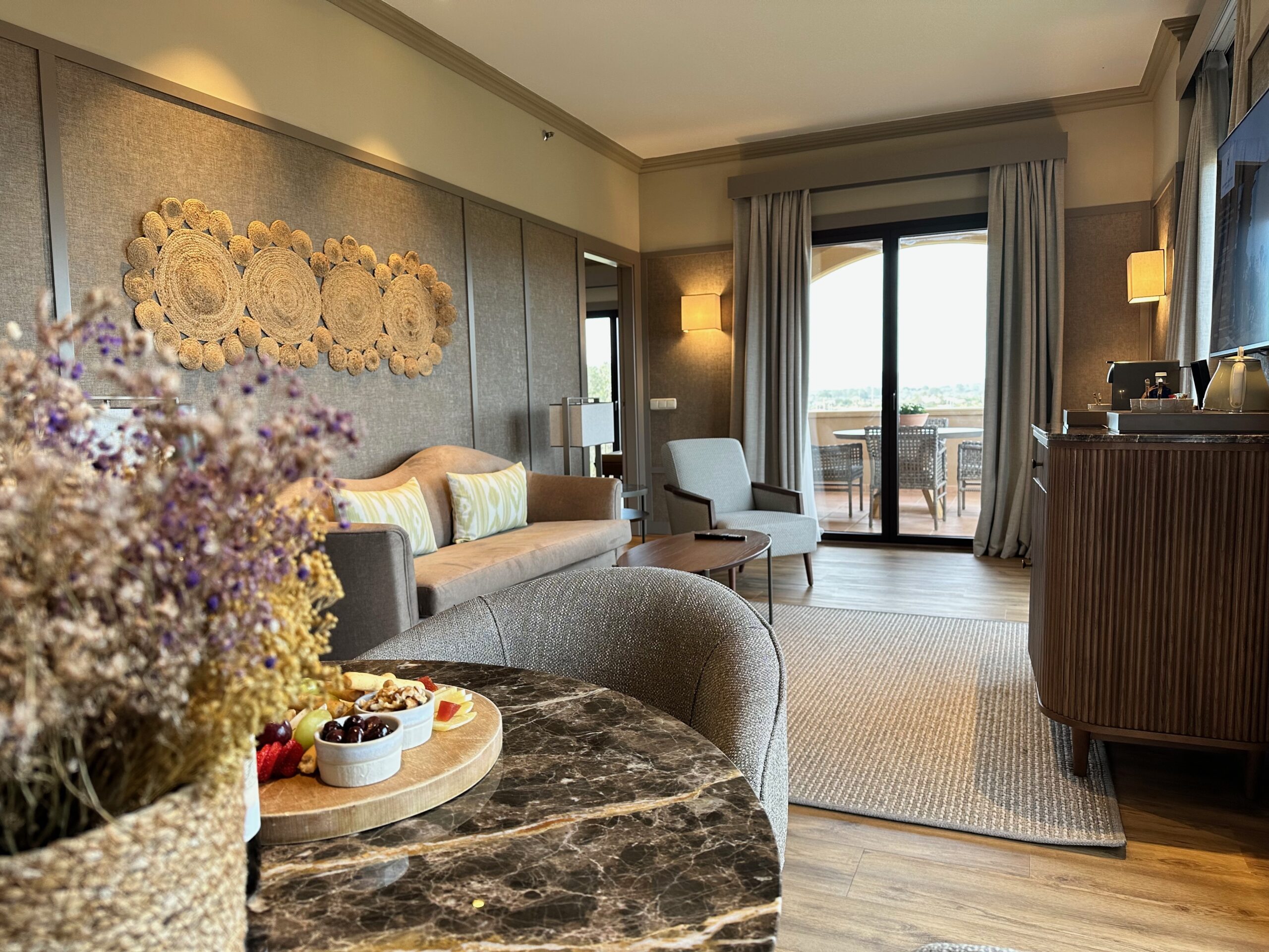Ich wusste sofort, als ich die lange Zufahrt entlang der Pinien hinaufrollte: Das hier fühlt sich richtig an. Zwar gehört das Golfhotel Hacienda Son Antem zur Autograph Collection von Marriott und verfügt über rund 151 Zimmer, doch es wirkt erstaunlich persönlich, fast boutique. Ich kann schon sagen, es ist ein Golfresort, das diesen seltenen Mix schafft: mallorquinischer Stil, natürliche Ruhe und moderner Komfort, ohne steif oder überinszeniert zu wirken.