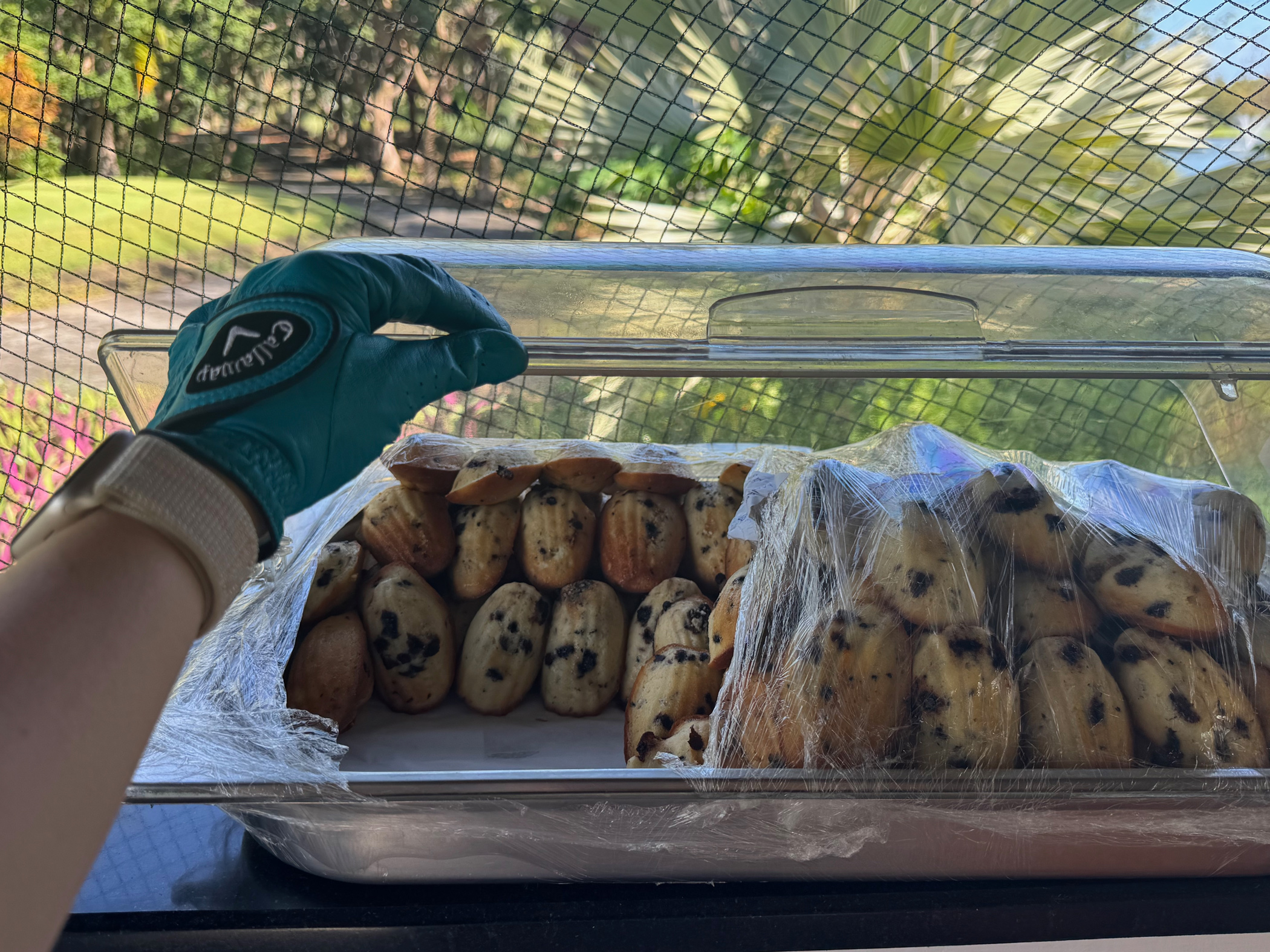 Der Zustand des gesamten Platzes ist über jeden Zweifel erhaben. Nach dem 9. Grün wartet ein Halfway-Kiosk, an dem Getränke wie Eistee und Wasser sowie kleine Snacks kostenlos bereitstehen. Die Madeleines haben auf vielen mauritischen Golfplätzen Traditionsstatus. Schliesslich ist die Insel kulinarisch stark von der französischen Esskultur geprägt, also überrascht es kaum, dass dieses kleine Gebäck auch zwischen Tee Box und Halfway House seinen festen Platz gefunden hat. Für mich jedenfalls ein Detail mit hohem Sympathiewert. Als bekennende Kuchenliebhaberin greife ich dort ausgesprochen bereitwillig zu.