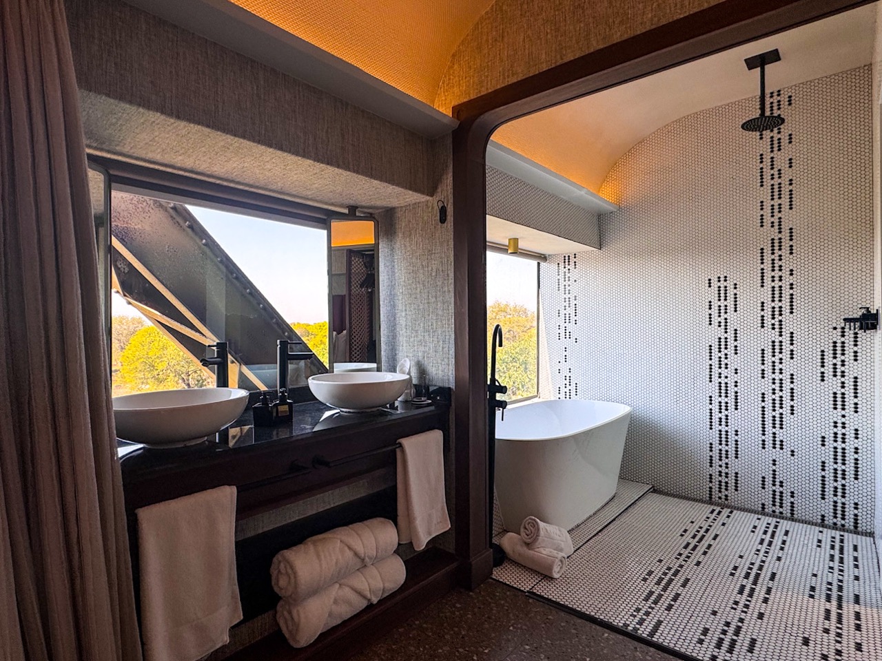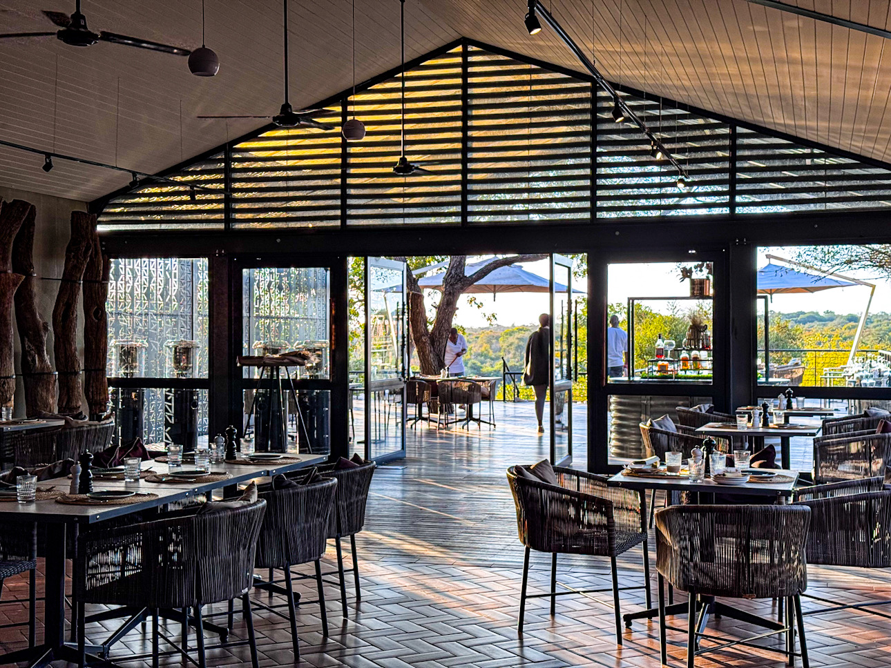 Oben – das ist der Wow-Moment, der Atemstillstand, wenn du zum ersten Mal durch die bodentiefen Fenster auf die Weite des Kruger blickst. Stilvoll, ruhig, mit Aussicht auf den Fluss, der unter dir vorbeizieht.