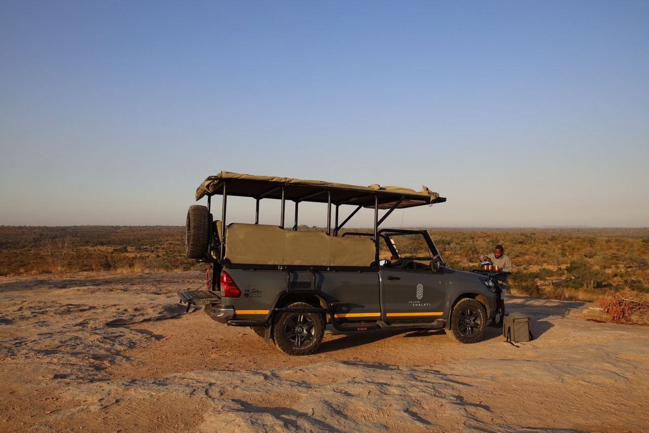 Es ist dunkel, es ist kalt, und man fragt sich im Halbschlaf kurz, warum man das eigentlich freiwillig macht. Normalerweise ist es holprig, staubig, mitten durch den Busch. Nicht so bei Shalati. Hier startet die Safari zwar ebenfalls in aller Herrgottsfrühe, aber entlang der geteerten Strassen des Kruger-Nationalparks. Ich nenne das gern „Safari Light“ – perfekt für alle, die nicht unbedingt Offroad-Fans sind oder beim Gedanken an Schlaglöcher schon Rückenschmerzen bekommen.