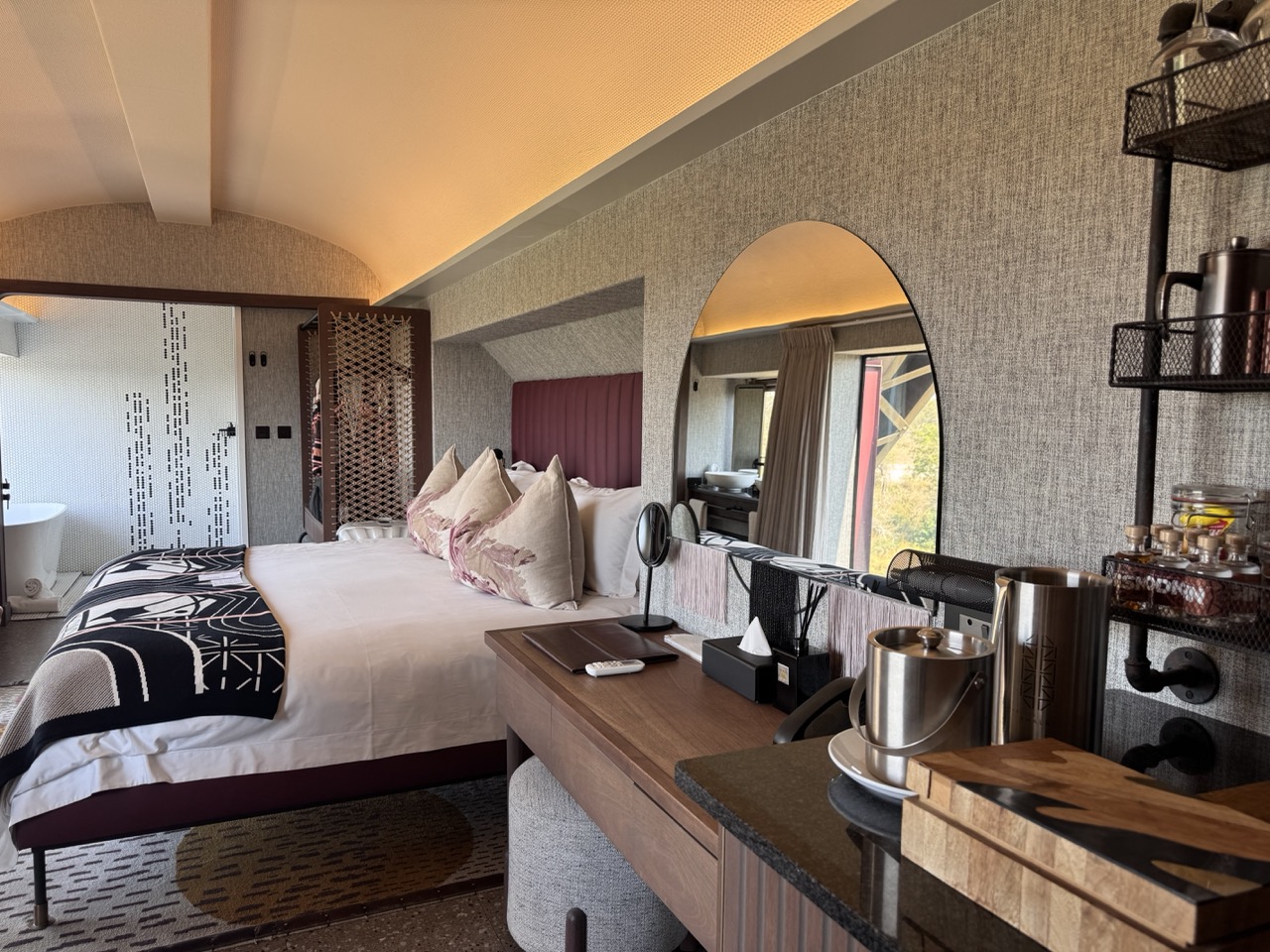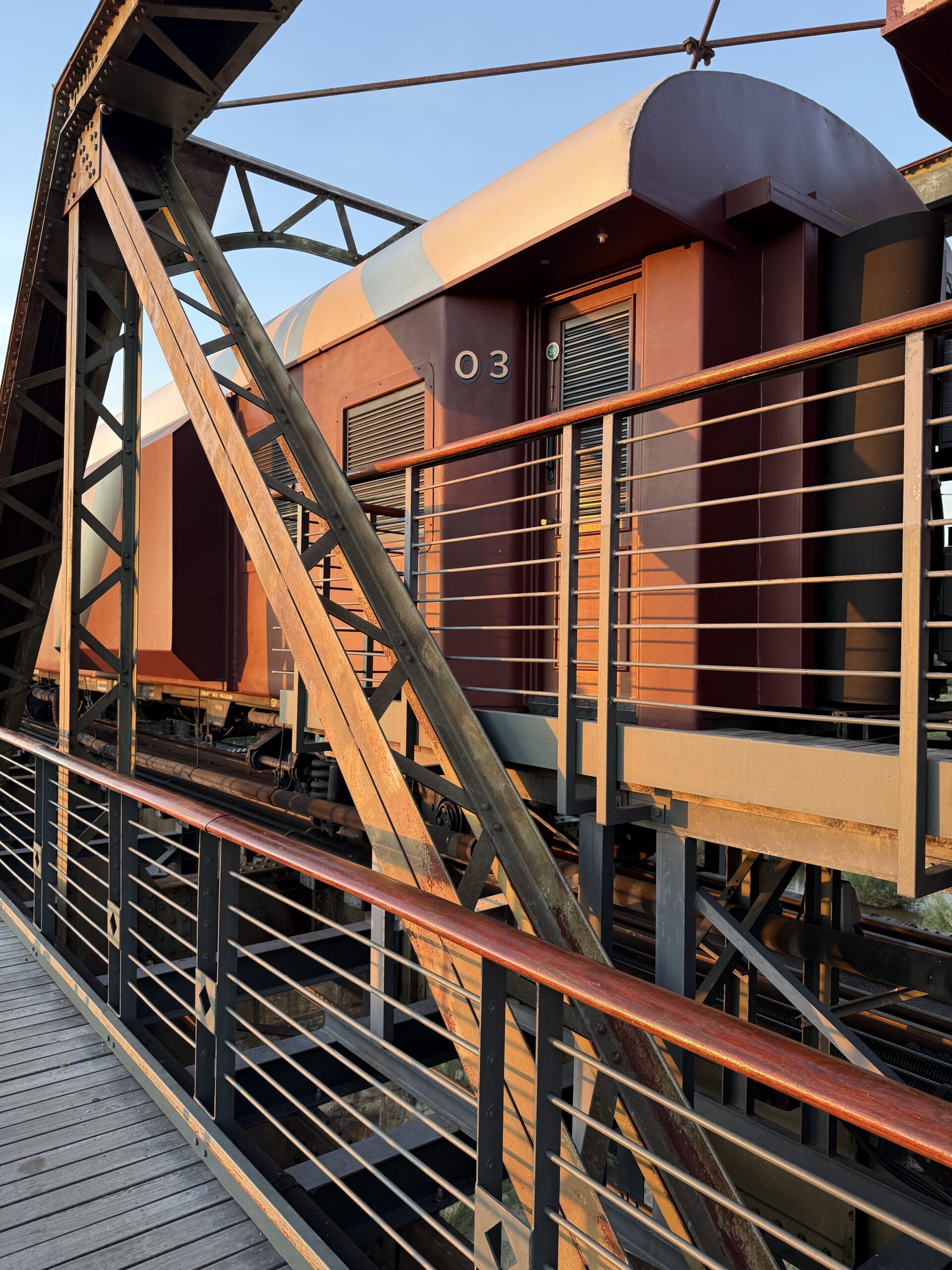 Nur über einen schmalen Steg erreichbar, erwartet dich in den Wagons, Carriage Suites genannt, ein absolut durchdachtes Design: ein bisschen nostalgisch, ein bisschen plüschig – aber sehr chic. Von der Bettwäsche bis zur Minibar: alles bis ins Detail durchdacht. Alles sorgfältig renoviert und in Luxus-Suiten mit Panorama-Glasfront, freistehender Badewanne und einem Ausblick, der so gut ist, dass du am liebsten nie wieder auschecken möchtest.