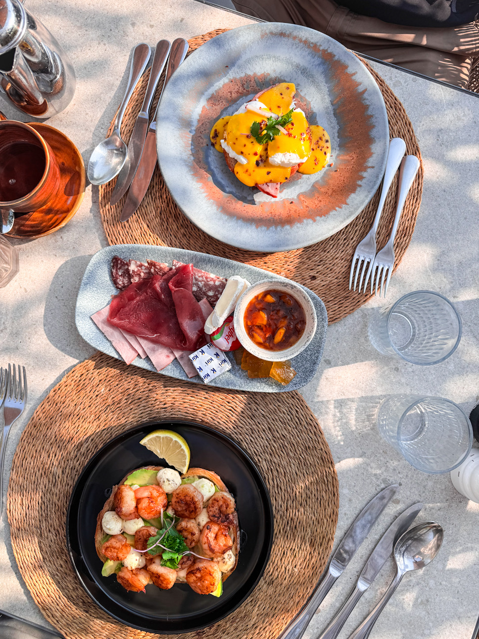 Zum Lunch gibt’s Leichtes – und doch mit Tiefe: Calamari mit asiatischem Crunch, Hähnchenspiess mit Salsa, gerösteter Blumenkohl mit Dukkah. Und weil hier jeder Tag nach Afternoon Tea schreit, wartet am Pooldeck ein High Tea mit allem Drum und Dran.