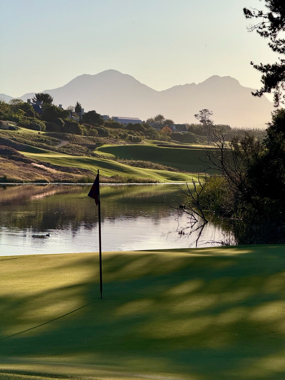 Im Fancourt zählt eben nicht nur, wie du spielst, sondern auch, wie’s dabei aussieht. Und das betrifft nicht nur die gepflegten Doglegs um funkelnde Seen. Wir spielen den Platz gemeinsam mit Eugene Rheeder – seit über neun Jahren Teil des Fancourt-Teams. Er spricht erstaunlich gut Deutsch – was daran liegt, dass er gute Freunde in Deutschland hat und die Sprache täglich anwenden möchte. Und er bringt’s auf den Punkt: «Hier geht’s nicht um Show, sondern ums Gefühl – ums herrliche Urlaubsgolf.» Und genau das ist auch die Philosophie des gesamten Resorts mit seinen traumhaft schönen Golfplätzen.