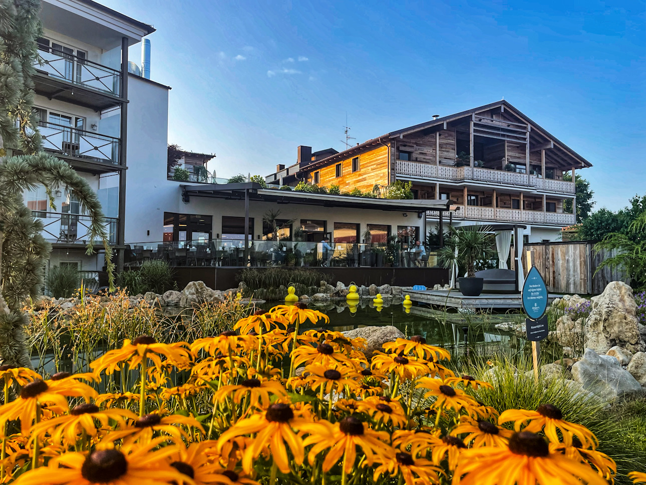 Im Sommer gibt es kaum etwas Schöneres, als das Frühstück auf der Seeterrasse zu geniessen und dabei den Blick auf das kleine Biotop schweifen zu lassen. Oder nach dem 5-Gang-Menü einen erfrischenden Sundowner zu trinken und den Tag ausklingen zu lassen.