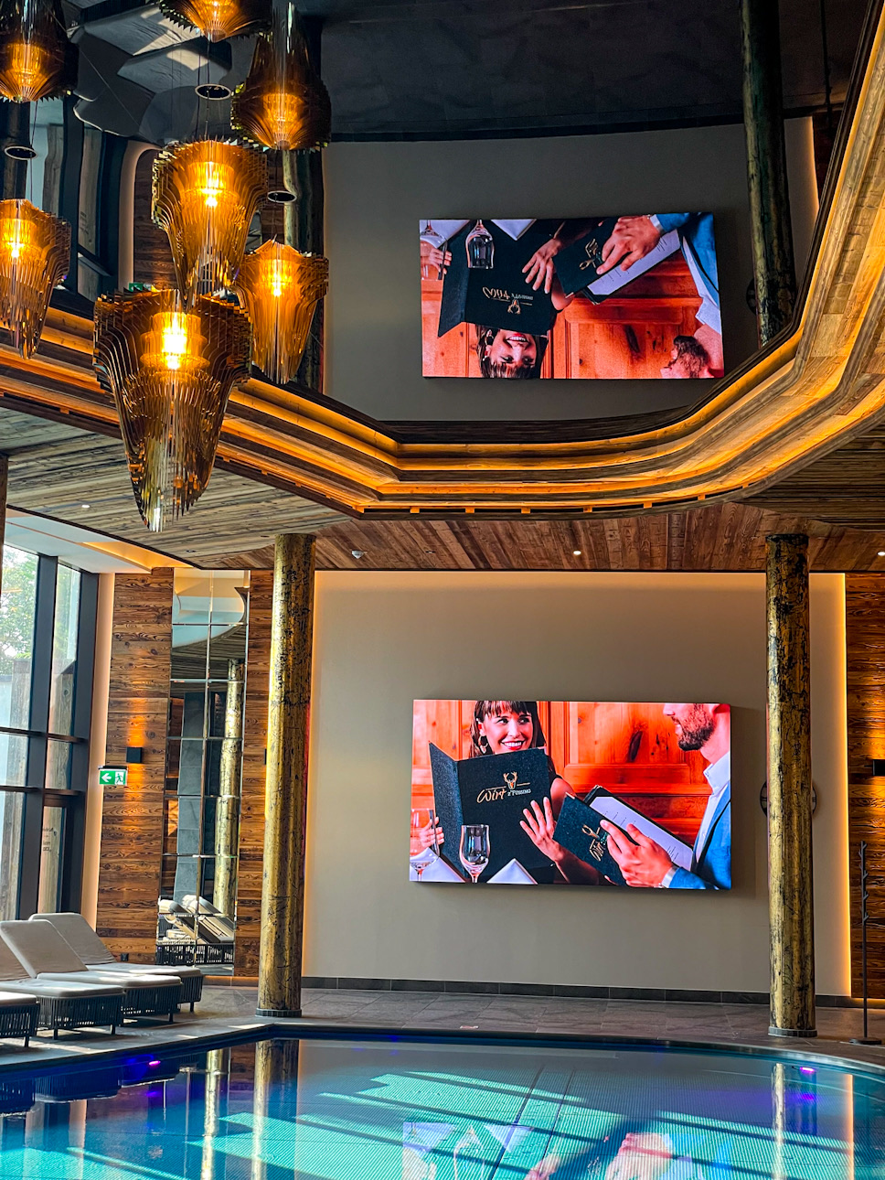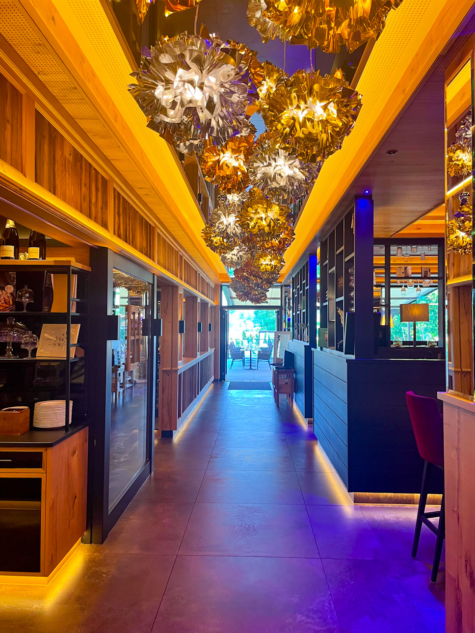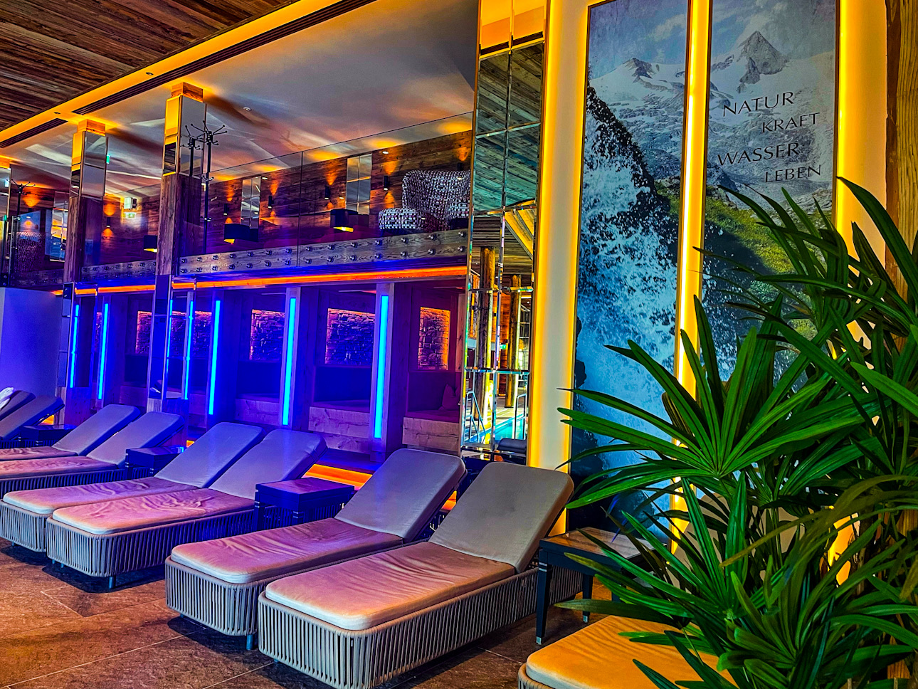 Und wenn du danach genug von Beauty-Tech hast, dann tauch einfach in die opulent inszenierten Wasserwelten des Resorts ab. Auf mehreren Etagen kannst du drinnen und draussen ins warme Thermalwasser gleiten und den Alltag hinter dir lassen. Zwischen goldenen Säulen, funkelnden Murano-Lüstern, Spiegeln und LED-Lichteffekten kommt fast ein bisschen Hollywood-Feeling auf. Ein romantisches Kaminfeuer und Fackeln im Aussenbereich setzen dem Ganzen die Krone auf.