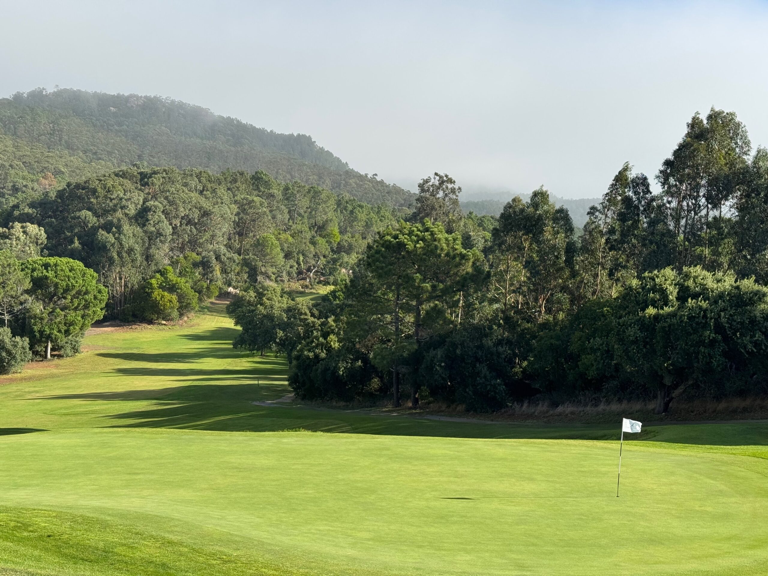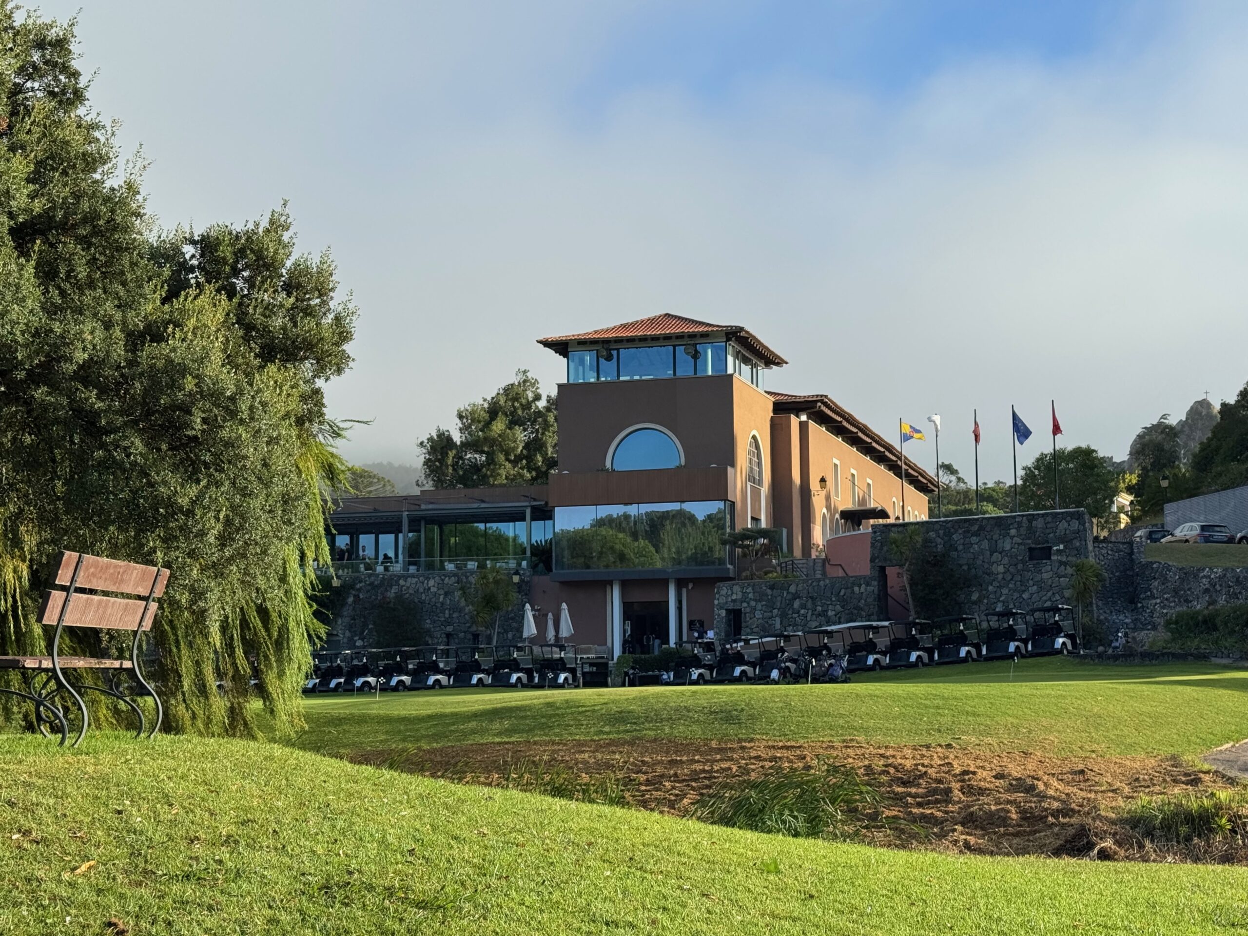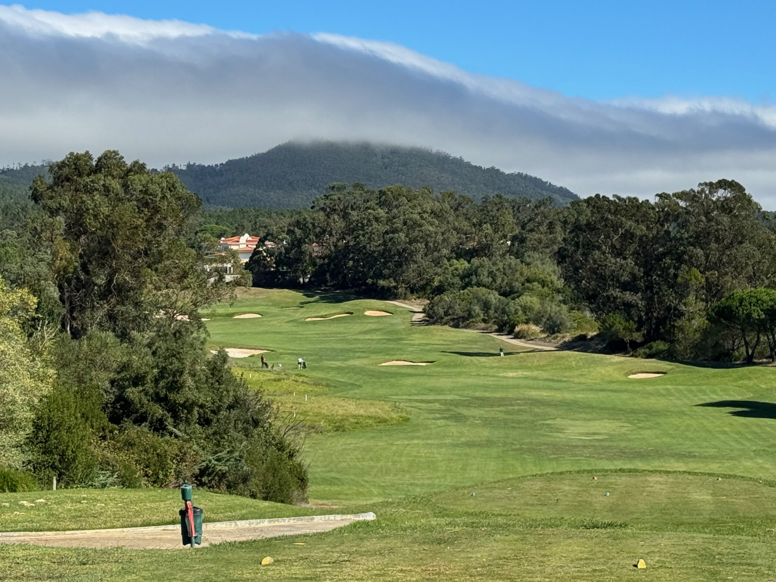 Wir besuchten das Penha Longa Golf Resort in Cascais als Greenfee-Spieler auf der Durchreise. Doch der Atlantic Course, einer der renommiertesten Golfplätze in der Region Sintra–Cascais, ist einer dieser Plätze, die man einfach gespielt haben muss, wenn man schon einmal hier ist. Bei uns ging es früh auf die Runde. Der Spray aus den Wolken über den Bergspitzen blies uns ins Gesicht, Windböen fegten über den Platz, und die Sintra-Berge hüllten sich in dramatische Nebelschleier. Der Himmel teilte sich in feuchtes Weiss und hoffnungsvolles Blau – ein fast mystischer Moment. Zufällig startete an diesem Tag auch ein KPMG-Golfturnier, die Spannung war deutlich spürbar. Wir mussten vor dem Turnier starten – ungeachtet des Wetters, das uns eher an Irland als an Portugal erinnerte.
