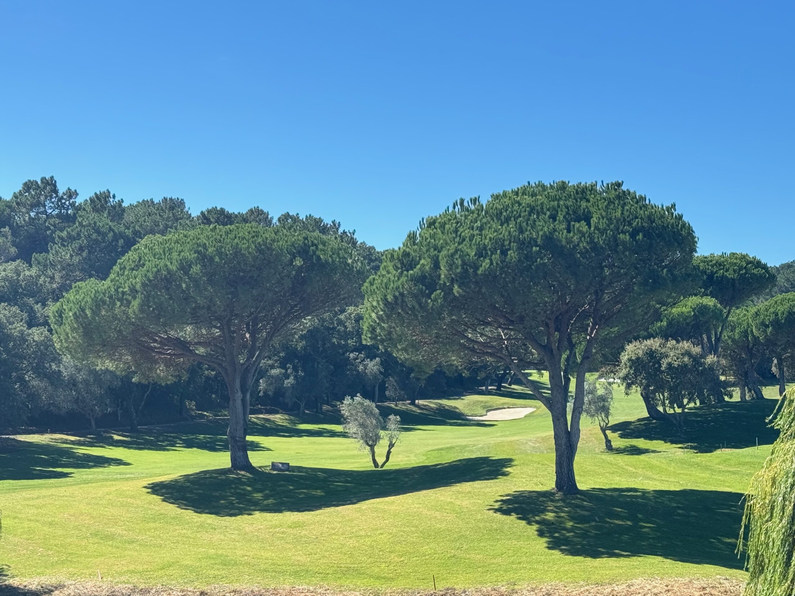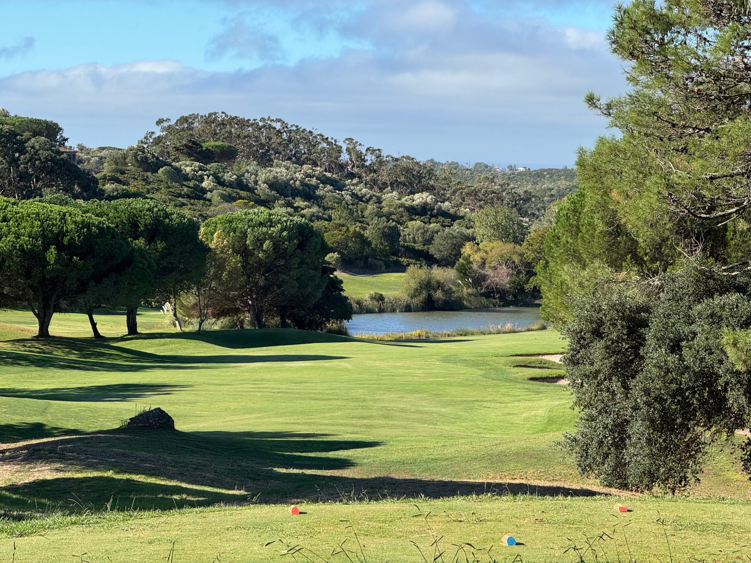 Vom Abschlag an Loch 12 öffnet sich der Blick nach vorne aufs Fairway – und nach rechts direkt auf die Rennstrecke, wo just die Classics stattfanden. Die Estoril Classics sind ein traditionsreiches Motorsport-Event am Circuito do Estoril, bei dem historische Rennwagen und Oldtimer über mehrere Tage gegeneinander antreten.