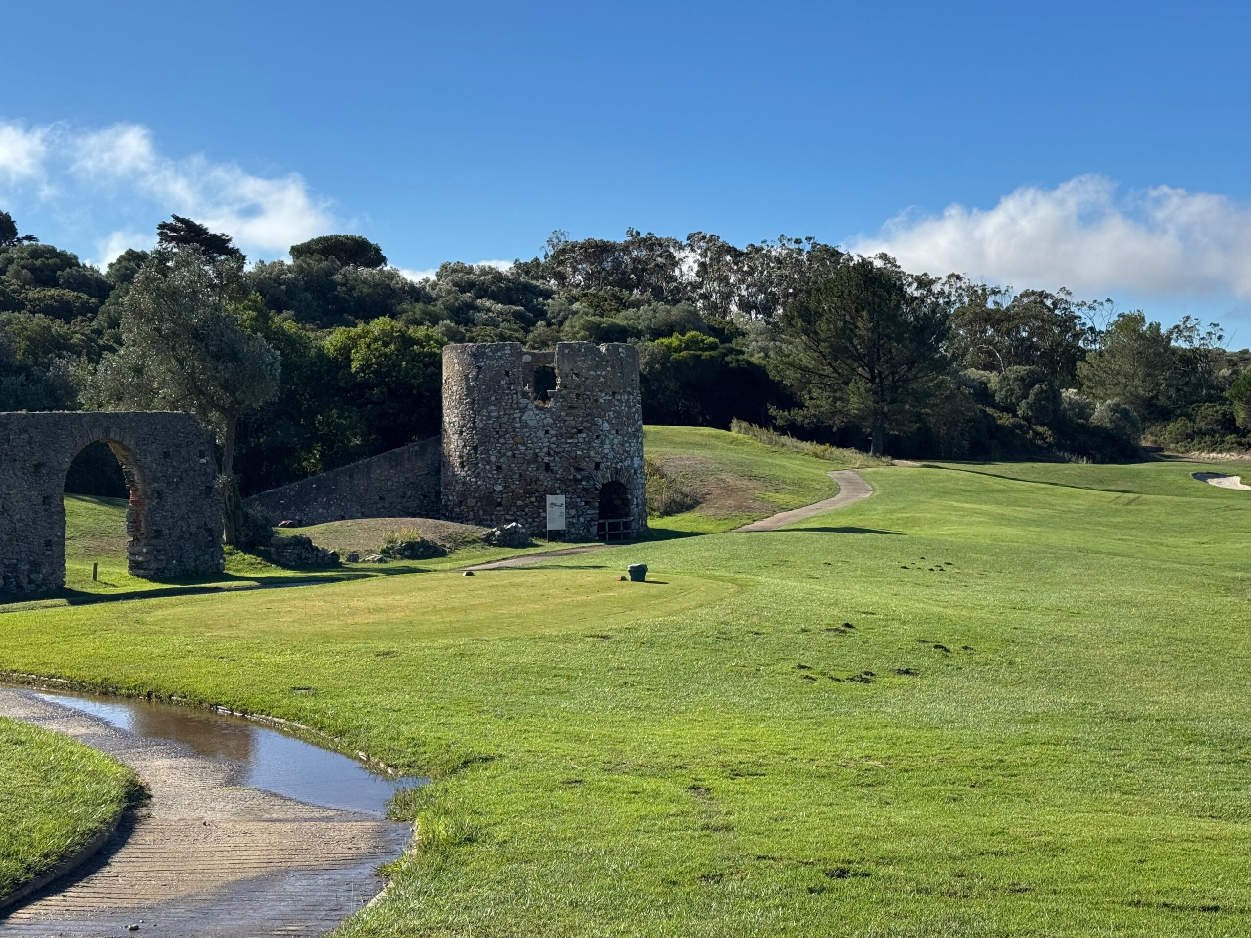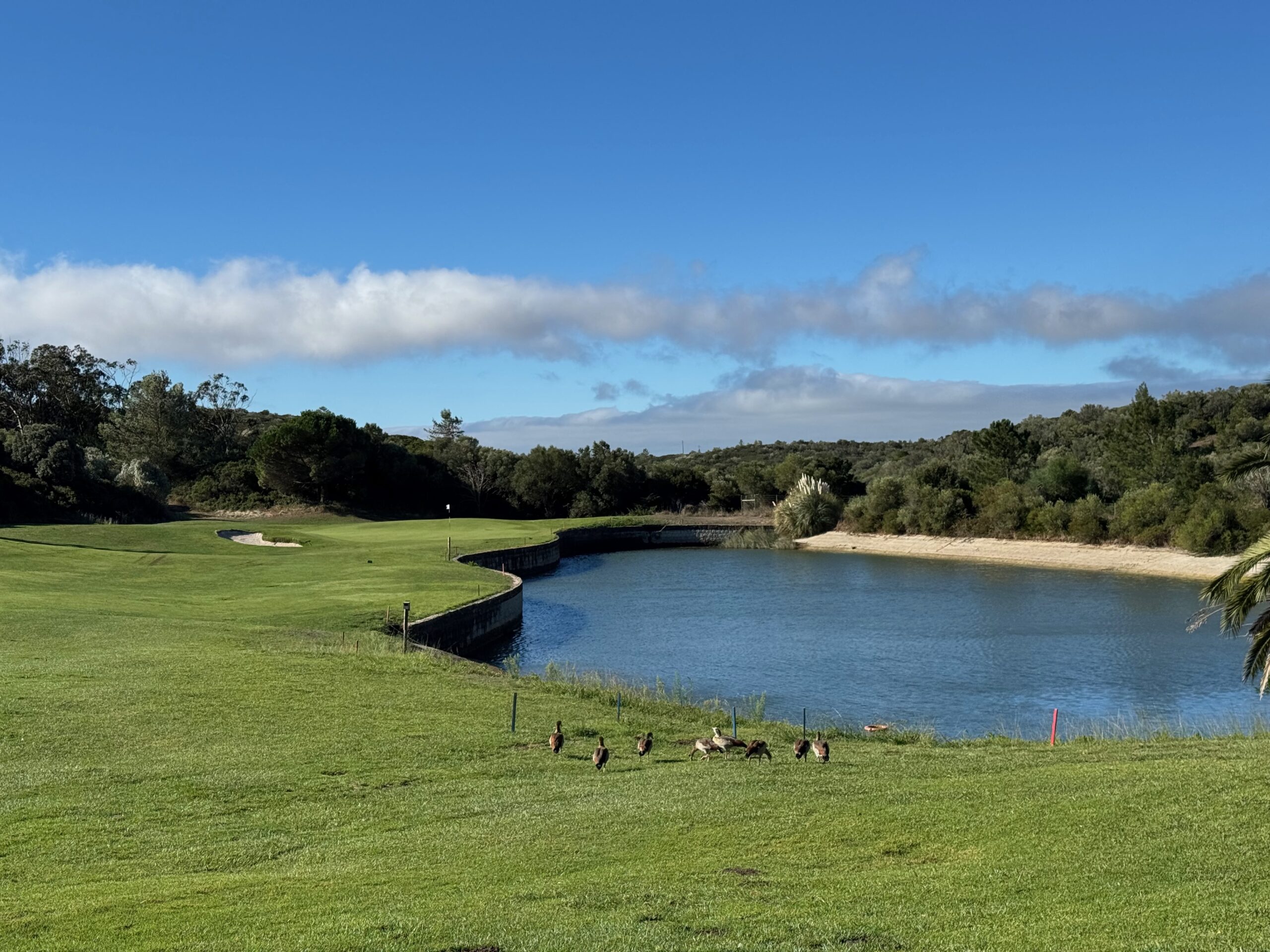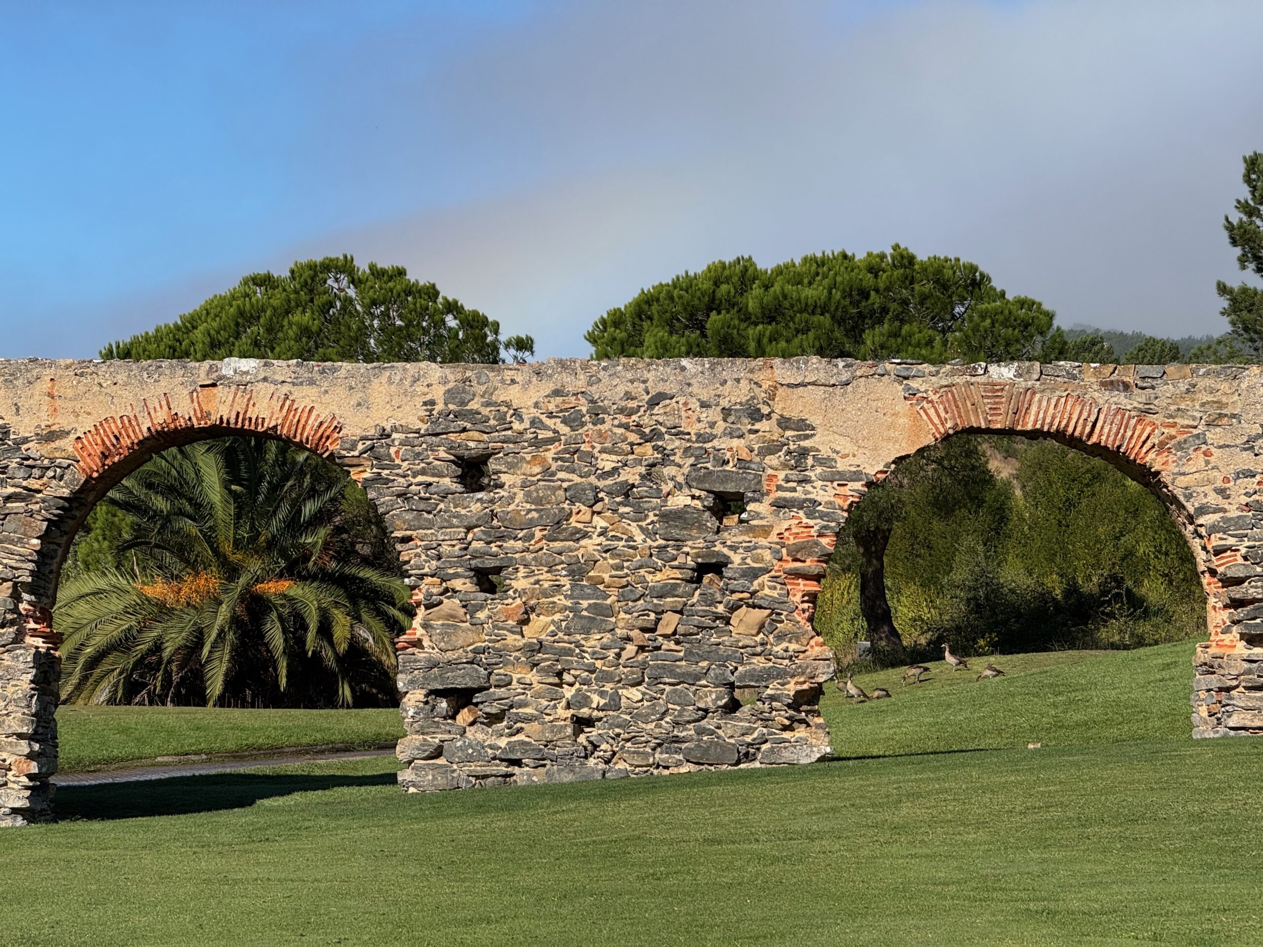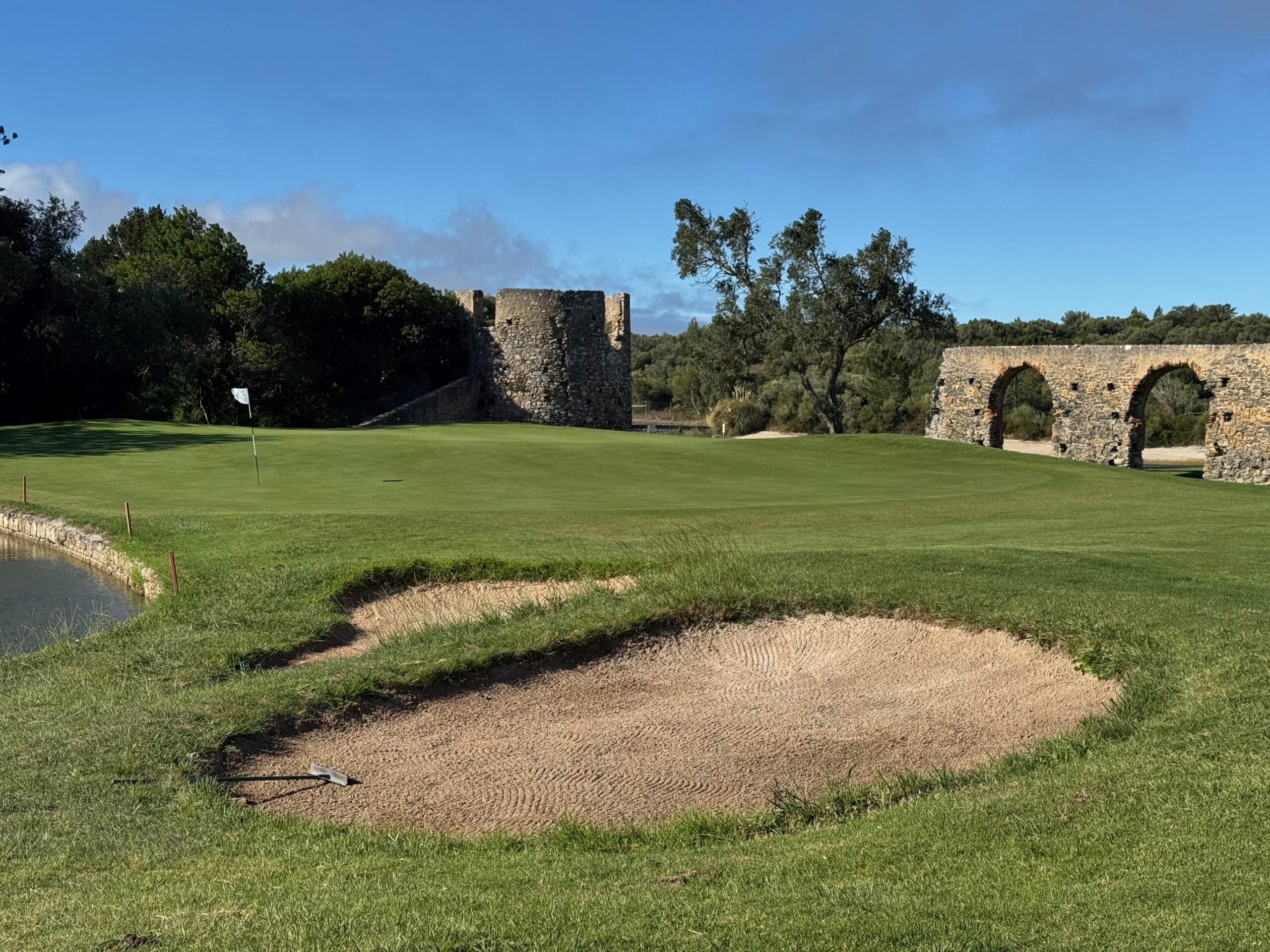 „Penha Longa“ – auf Deutsch so viel wie langer Felsen – liegt am Rande des Sintra-Gebirges, wo sich massive Felsformationen mit dichtem Wald und weiten Ausblicken bis hin zum Atlantik abwechseln. Ein echter Eyecatcher, ja fast schon ein Postkartenmotiv, ist Loch 6: ein Par 4, dessen Grün nicht nur von einem See, sondern auch von einer mittelalterlichen Bogenmauer verteidigt wird. Zwischen den Mauern eines alten Klosters und unter dem Blick eines historischen Aquädukts spielst du dein wohl schönstes Golf. Der restaurierte See ist dabei weit mehr als nur ein malerisches Detail im Platzdesign – er dient als zentrales Reservoir für die Bewässerung und macht den Spielbetrieb effizient und ressourcenschonend.