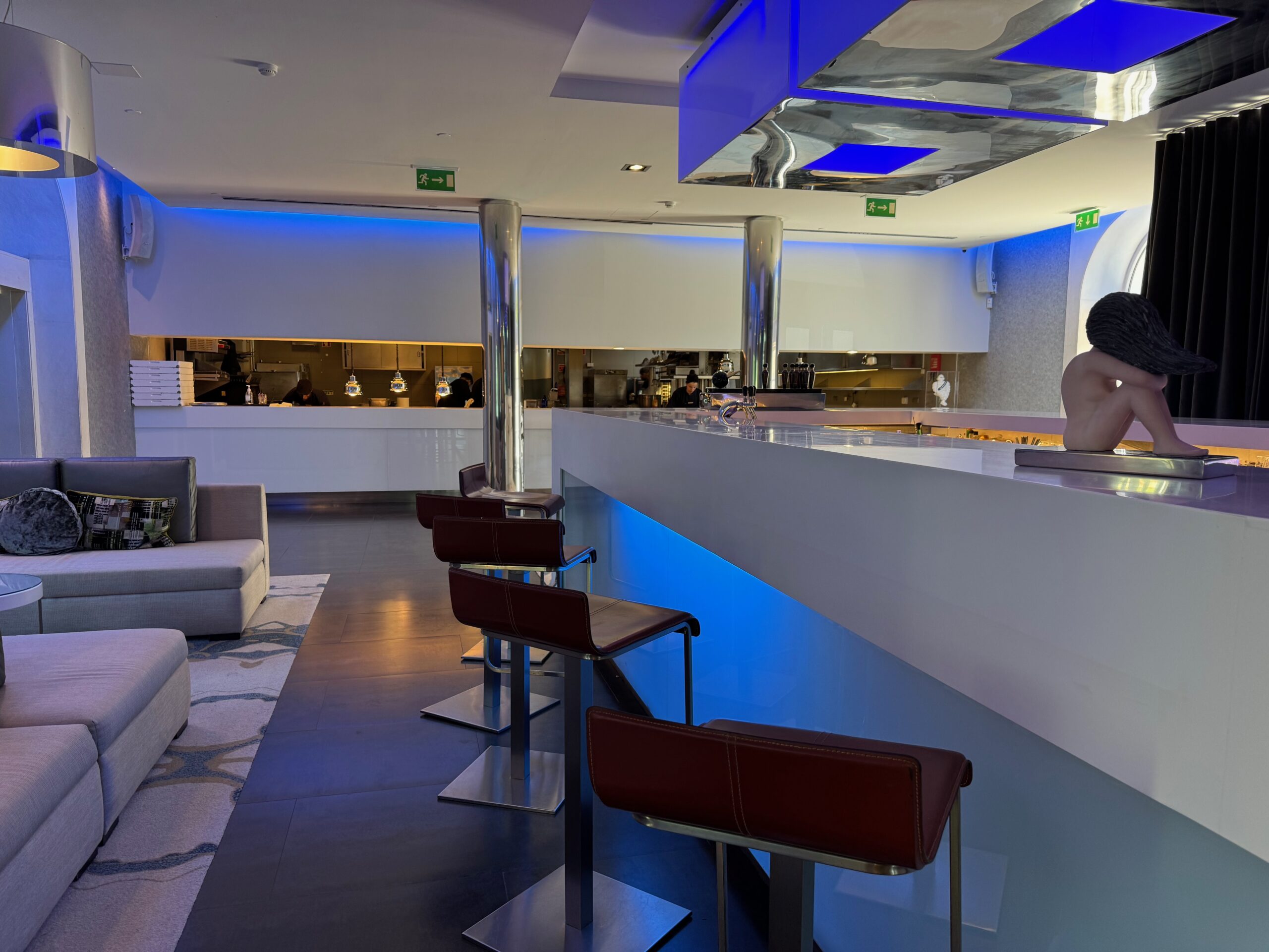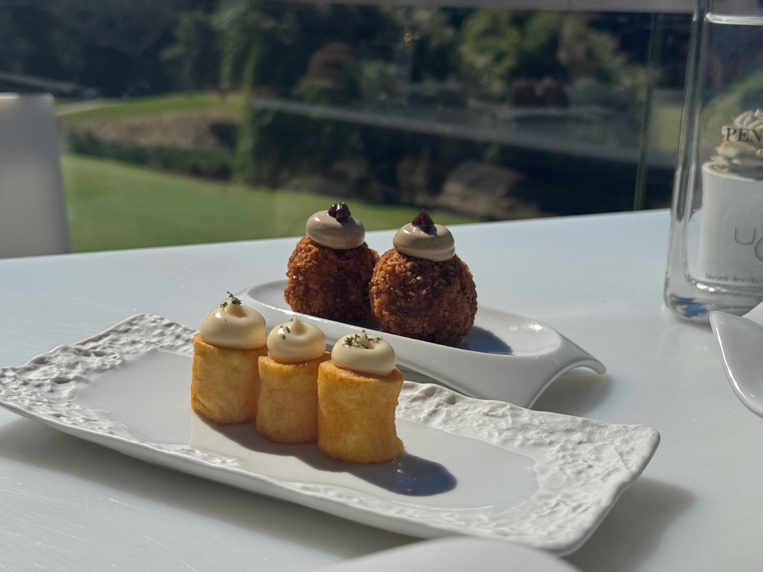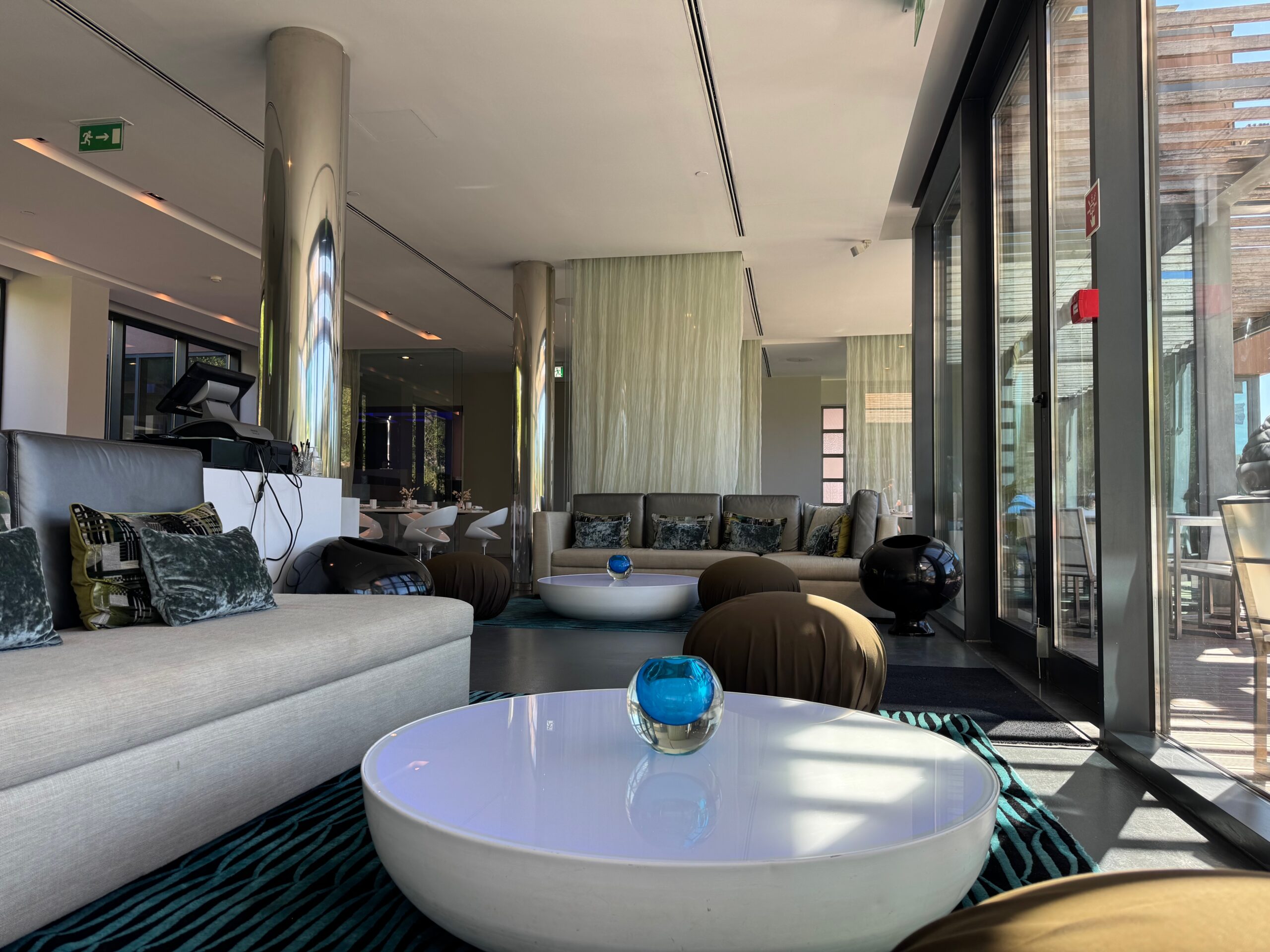 Doch kaum legt sich die Sonne tiefer über die Sintra-Berge, verändert sich das Restaurant. Denn jetzt übernimmt LAB by Sergi Arola – das Michelin-Sterne-Restaurant des Resorts. Wo eben noch leckere Crocquetas und Burger im Brioche serviert wurden, kommt nun Haute Cuisine auf den Tisch. Mehrgängige Degustationsmenüs, die zwischen portugiesischer Tradition und avantgardistischer Kreativität pendeln, begleitet von einem gläsernen Weinkeller.