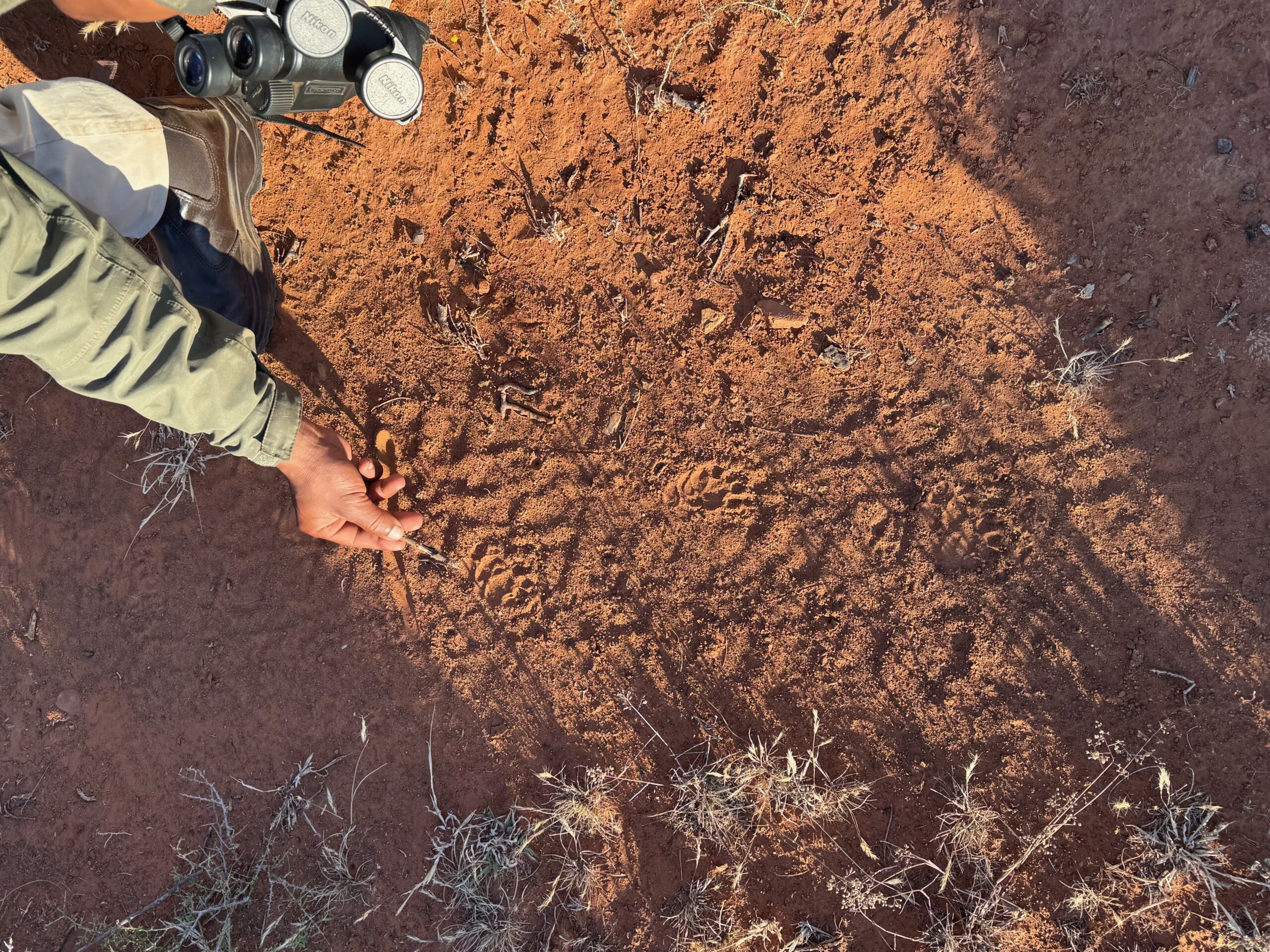 Wir lernen viel über Flora und Fauna – und ja, mir fällt auch auf: Der Busch ist, sagen wir’s charmant, bestens gedüngt. Herden von Antilopen, Kudus, Zebras und Giraffen – hier lebt, frisst und verdaut alles ganz ungeniert. Der Boden ist steinig, das Gestrüpp störrisch – festes Schuhwerk erweist sich als goldrichtig.