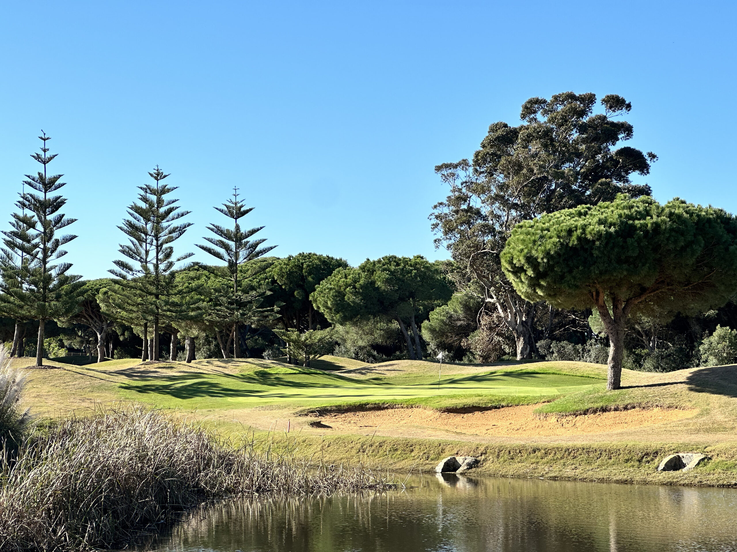 Entworfen wurde Sancti Petri Hills Golf 2006 von Manuel Piñero, einem der grossen europäischen Spieler der 80er Jahre. Und ja, der Name lässt Hügel vermuten – tatsächlich ist der Platz flach und angenehm zu gehen. Gerade für Spieler:innen mit höherem Handicap wirkt er auf den ersten Blick einladend. Doch der Teufel liegt hier konsequent im Detail: Winkel, Landezonen, Wind. Wasser.