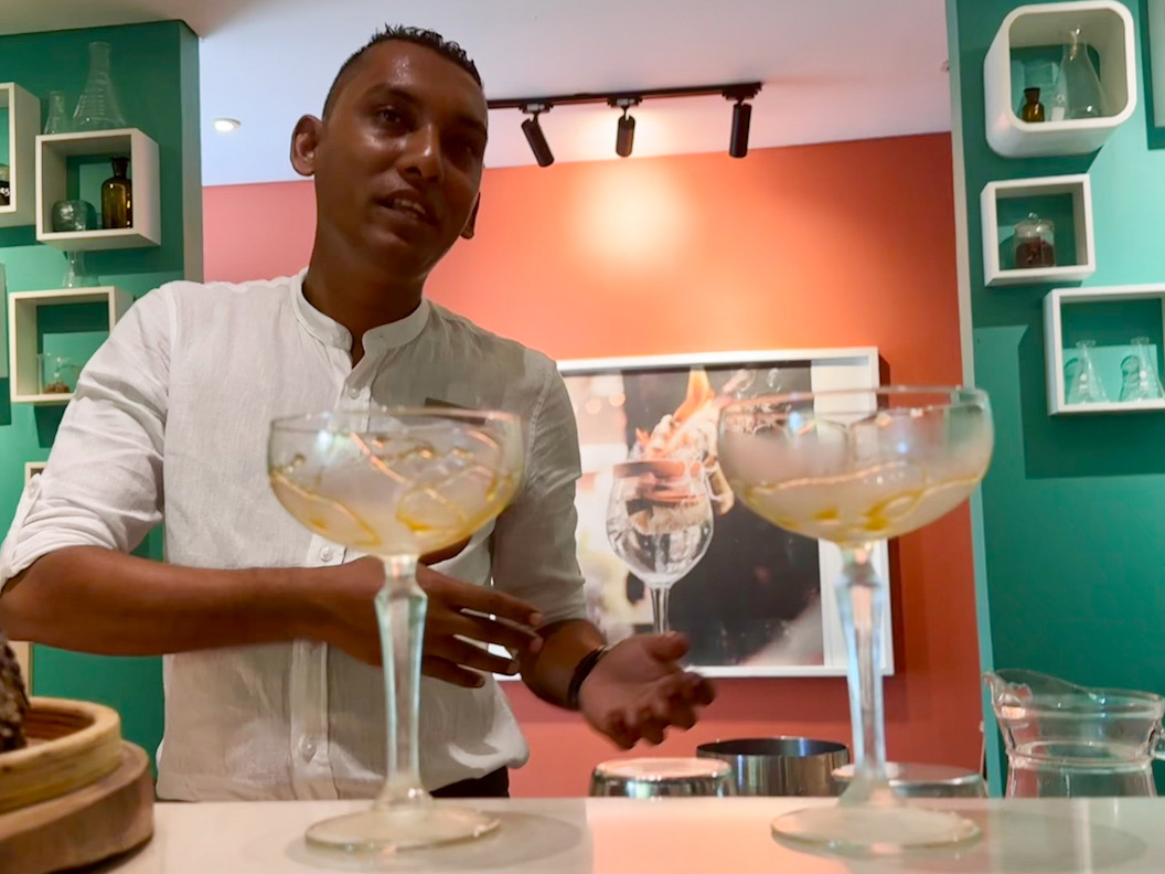 Vini steht hinter der Bar und grinst. Nicht das aufgesetzte Servicelächeln, das man so oft kennt — sondern das echte, leicht verschmitzte Lächeln eines Menschen, der weiss, dass er gleich etwas zeigt, das dich überraschen wird. Die Bar heisst «Santé», auf dem Tresen liegen frische Kräuter, kleine Tonics, Ingwerwurzeln, Honig. Und irgendwo zwischen dem ersten Riechen und dem zweiten Schluck merkt man: Das hier ist kein gewöhnlicher Cocktailkurs.