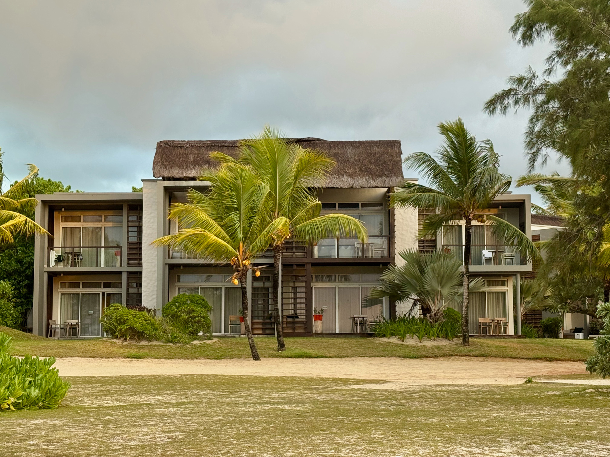 Nach dem Check-in in der schicken Open-Air-Lobby geht es erst einmal stilecht im Golfbuggy quer durch die palmengesäumte Anlage. Wie in vielen Resorts auf Mauritius ist auch hier der Transport durch die freundlichen Mitarbeitenden jederzeit möglich, falls du nicht zu Fuss durch die weitläufige Gartenlandschaft gehen möchtest. Wir rollen durch ein kleines Labyrinth aus Palmen, vorbei an doppelstöckigen Appartements, während von der Poolseite her Sega-Drums zu hören sind. Dieses rhythmische, typisch mauritische Pulsieren signalisiert sofort: Ferienmodus an.