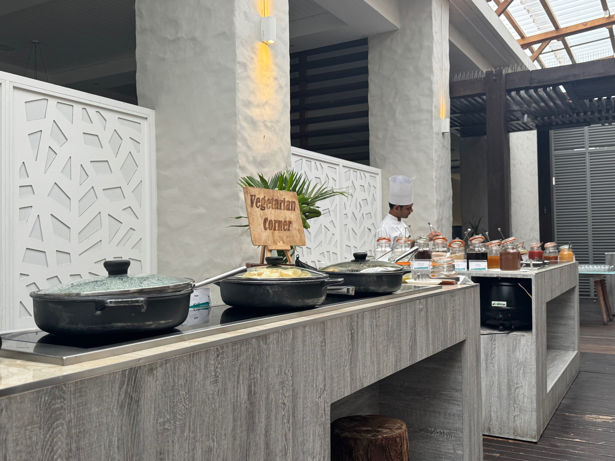 Unser Tag beginnt im Le Marché, dem Hauptrestaurant des Resorts. Hier wird gefrühstückt, und zwar frisch, grosszügig und international. Es gibt eigentlich alles, was mein Frühstücksherz begehrt. Besonders die süssen Leckereien haben es mir angetan, die mich zwar nie ganz so lange satt machen, wie sie sollten. Aber um die Kalorien zu verarbeiten wartet ja später noch eine Golfrunde auf dem Anahita.