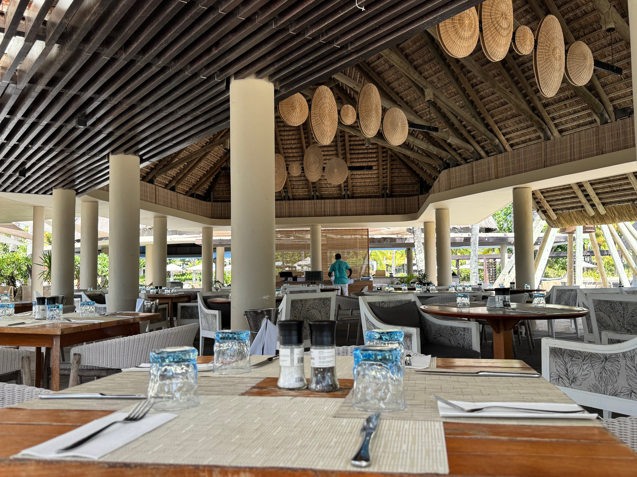 Direkt am Strand, neben der Poolbar, liegt schliesslich das Tides. Hier wird es lässiger, luftiger und oft auch lebhafter. Regelmässig finden Strandabende mit grossem Buffet, Live-Musik und Sega-Tänzerinnen und Tänzern statt, die den Rhythmus der Insel ganz selbstverständlich mitbringen. Wenn du möchtest, sitzt du hier barfuss im Sand, mit einem Drink in der Hand und genau dem Gefühl, dass Ferien manchmal gar nicht mehr brauchen als diesen einen Moment.