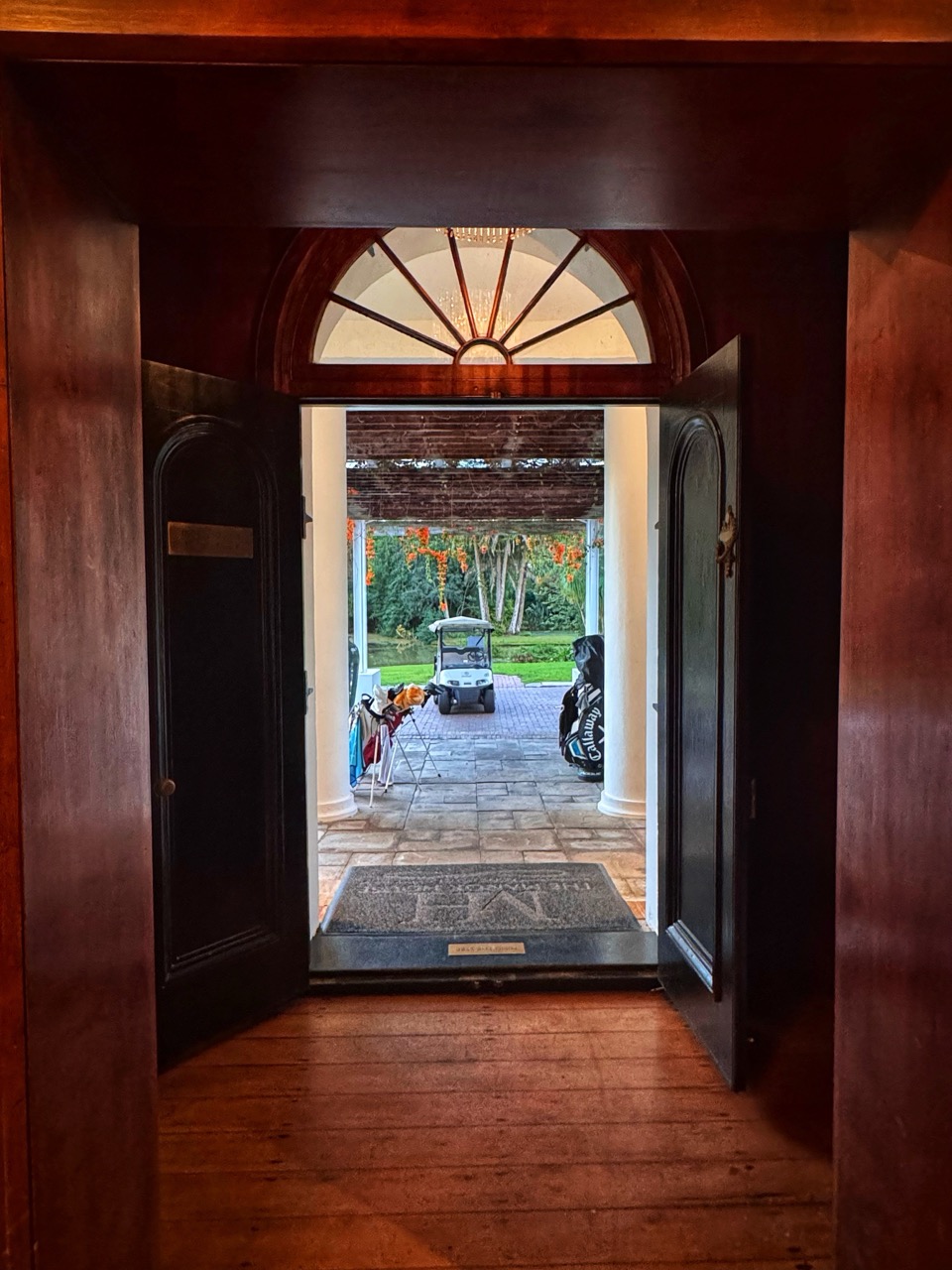 Noch in voller Safari-Montur und mit den Spuren unseres Abenteuers betraten wir das elegante Foyer und spürten die neugierigen Blicke der Gäste, die sich wohl fragten, in welcher Lodge und welchem Game Reserve wir gewesen waren. Typische Golfer erkennt man meist schon von Weitem: Titleist-Cap, J.Lindeberg-Poloshirt und FootJoy-Golfschuhe. Ein prüfender Blick eines älteren Herrn – dann ein wohlwollendes Nicken. In wenigen Stunden würden auch wir wieder in unser Golfer-Outfit schlüpfen, mit Cap, Polo und allem, was dazugehört.