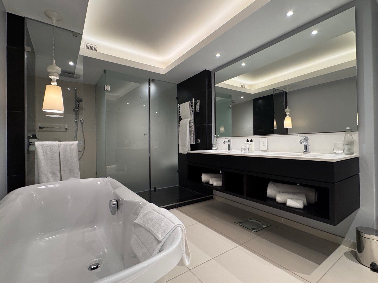 Wir beziehen eine der Homewood Suiten – die „Einstiegskategorie“ des Hauses, mit kleinem Balkon in ruhiger Lage und direktem Blick auf den Pool. Doch keine Sorge: „niedrigste Kategorie“ bedeutet hier keineswegs Verzicht auf Luxus. Im Gegenteil – die Suite ist grosszügig geschnitten, verströmt wohnliche Eleganz und stilvolle Zurückhaltung. Liebevoll gesetzte Details, eine durchdachte Ausstattung und ein Ambiente, das sofort ein Gefühl von Ankommen und Wohlfühlen vermittelt.