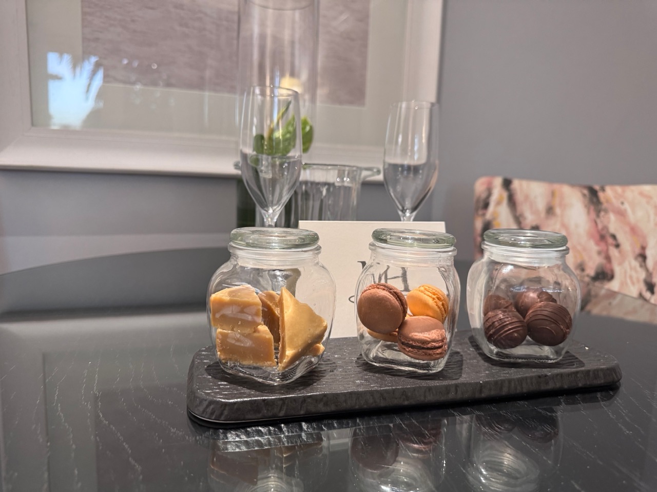 Das Manor House verwöhnt in den Suiten mit zahlreichen liebevollen Extras: eine Flasche erlesener Wein aus Steenberg, hausgemachte Pralinen und luftig-leichte Makrönchen – gefüllt mit feiner Crème aus frischen, natürlichen Zutaten und als Bisous von edler Schokolade umhüllt.